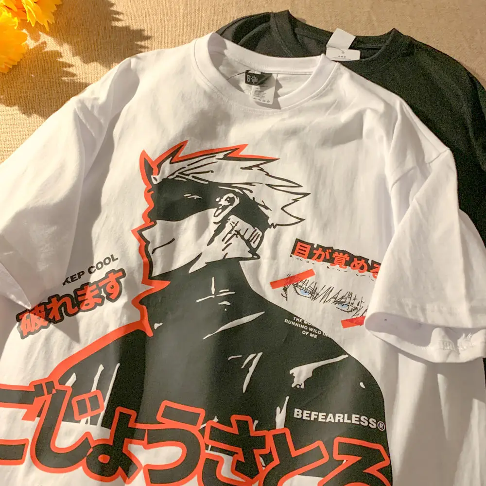 Мужская футболка в стиле Харадзюку, футболка унисекс с коротким рукавом и принтом ююютсу кайсена, крутая Повседневная футболка с мультяшным аниме, мужские топы в уличном стиле