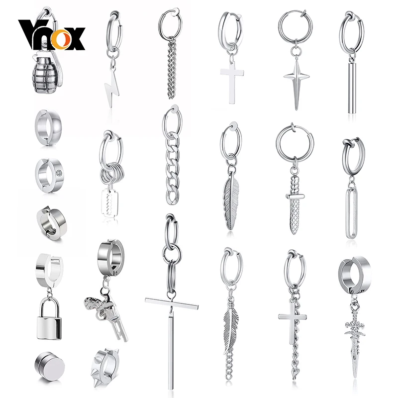 Серьги-кольца мужские с крестиком, из нержавеющей стали, в готическом стиле