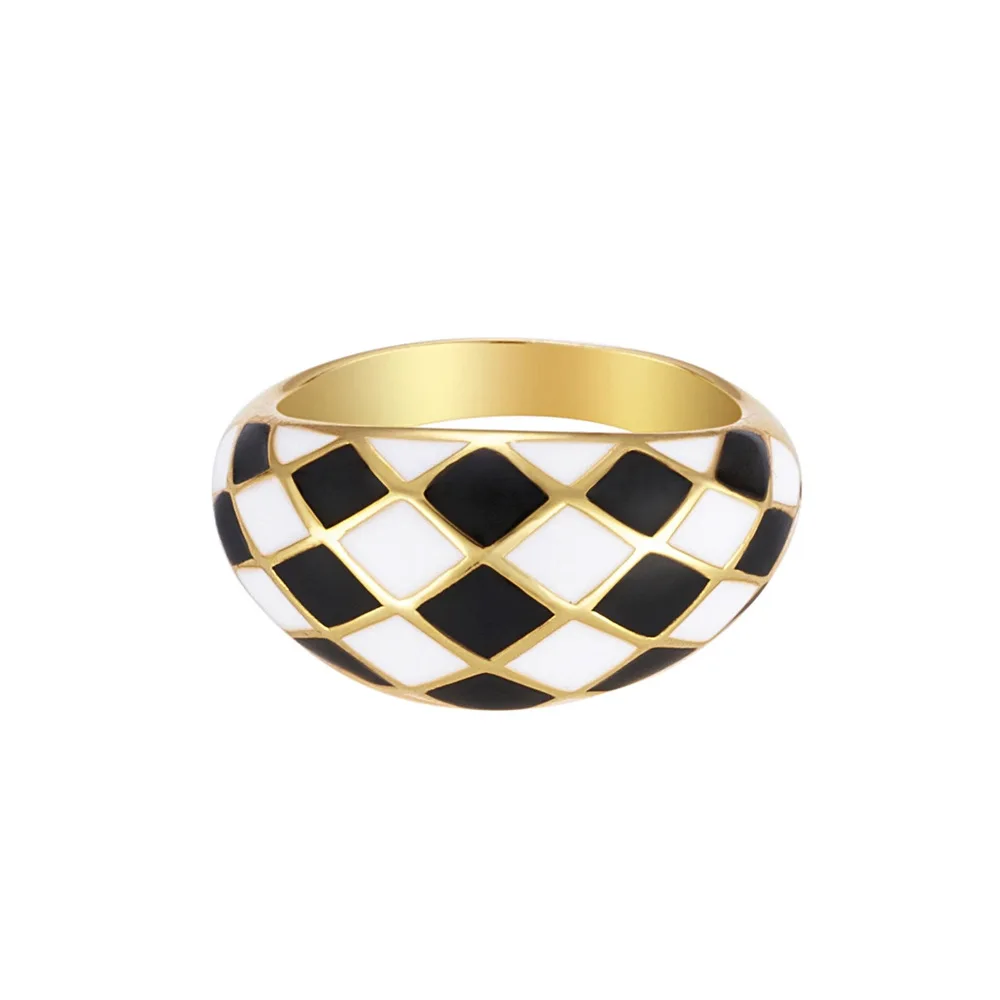 Женское Винтажное кольцо в клетку, креативное разноцветное эмалиров...