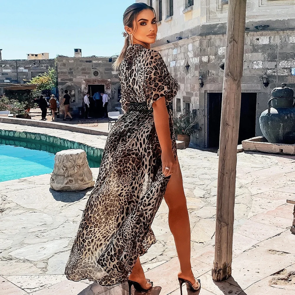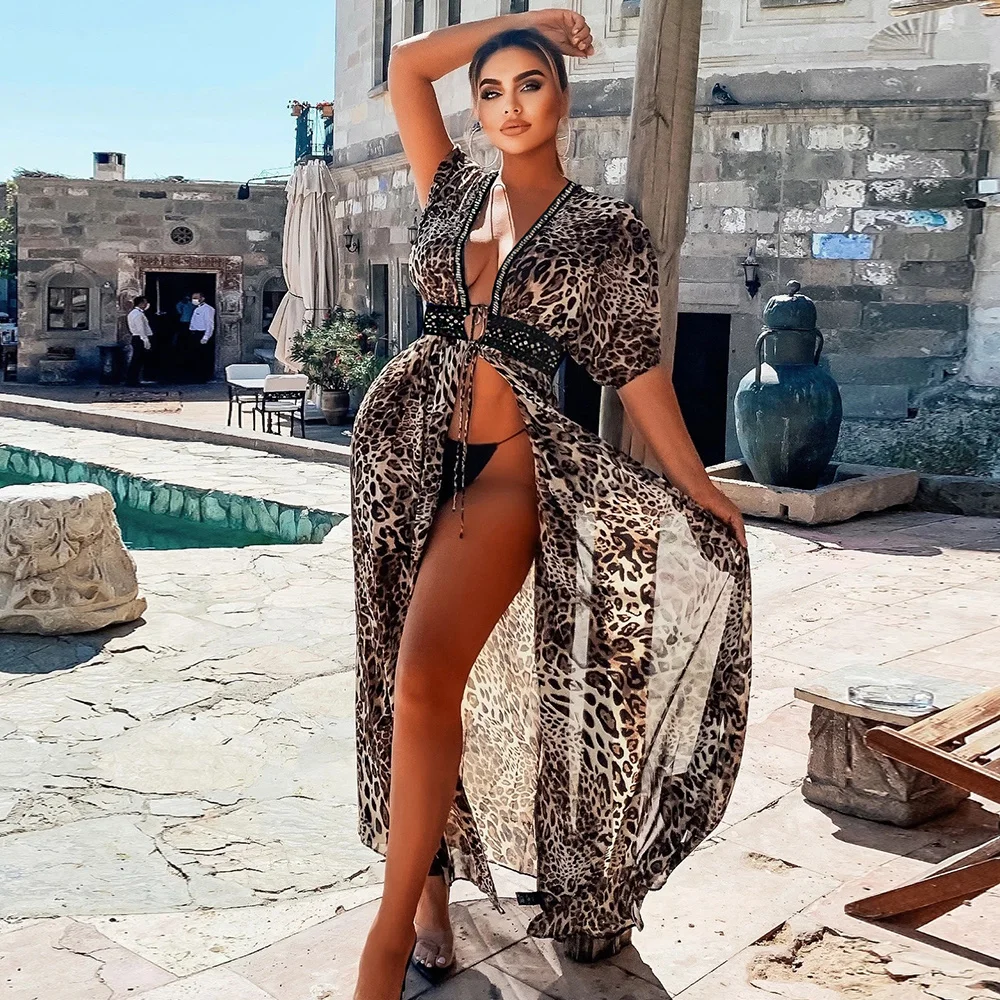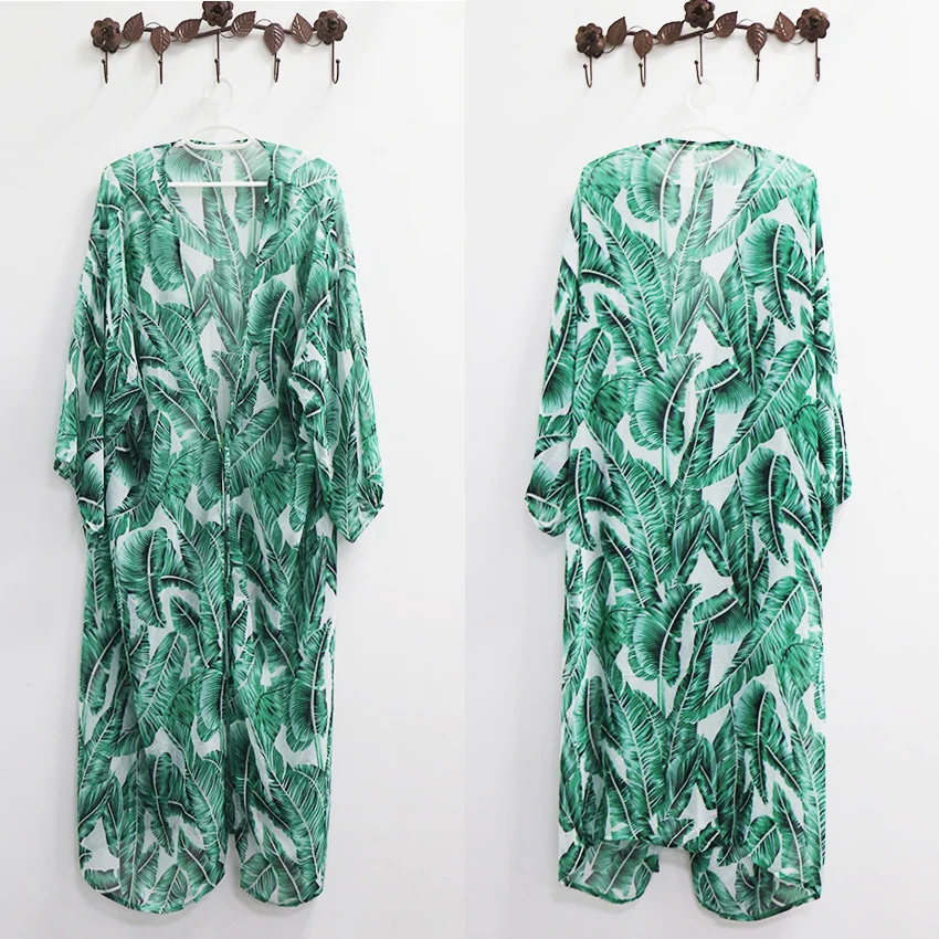 Бикини с принтом листьев, пляжное платье, накидка, туники для пляжа, длинный кафтан, пляжный саронг, купальник, накидки, женский купальник