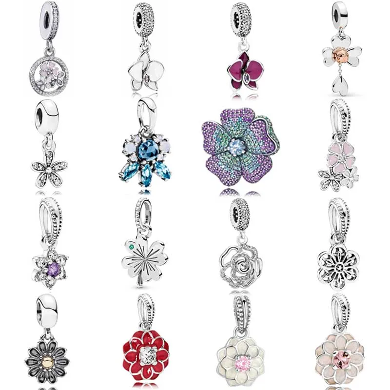 Подвеска сделай сам из серебра 925 пробы с изображением цветущей орхидеи клевера и божьей коровки