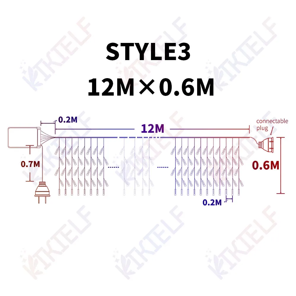 Сказочная гирлянда-сосулька 4612 м, рождественское уличное украшение, светильник, свисающая светодиодная занавеска 0,6 м, гирлянда на новый год, свадьбу, вечеринку