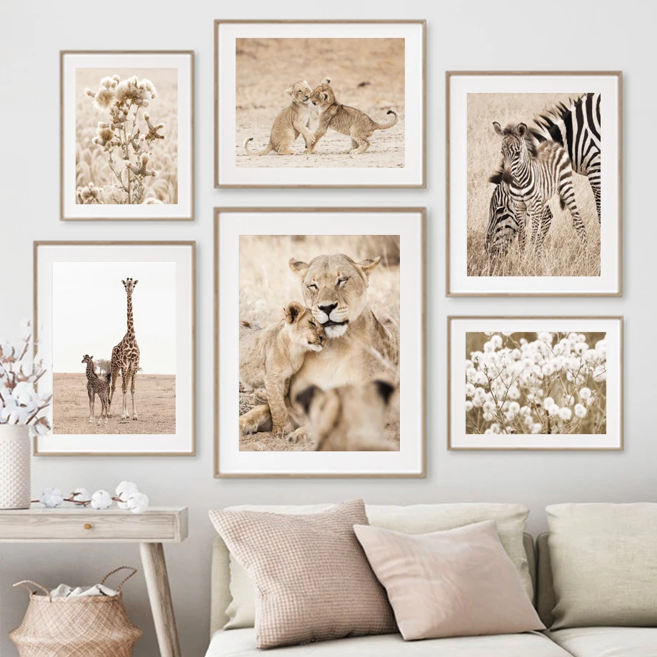 Рид Лев Слон Африканские животные бежевые скандинавские плакаты и п...