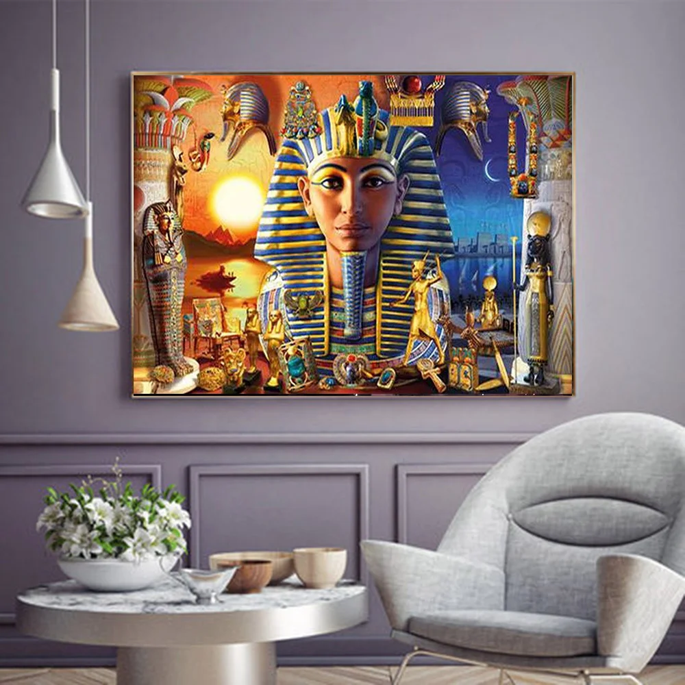 Алмазная вышивка Huacan мозаика Фараона полная квадратнаякруглая алмазная живопись Египетский портрет Пейзаж Настенный декор