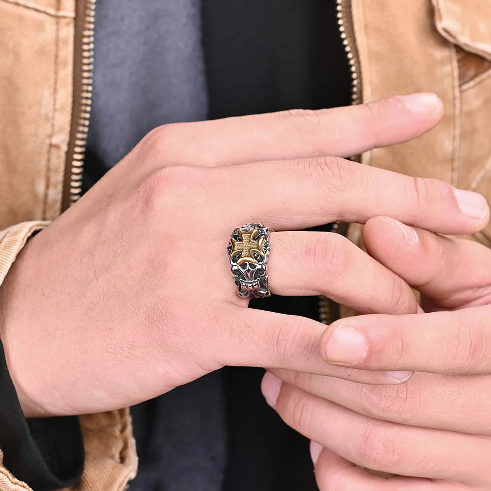Классическое позолоченное кольцо с крестом, модное мужское кольцо, Очаровательная бижутерия для езды на скалах