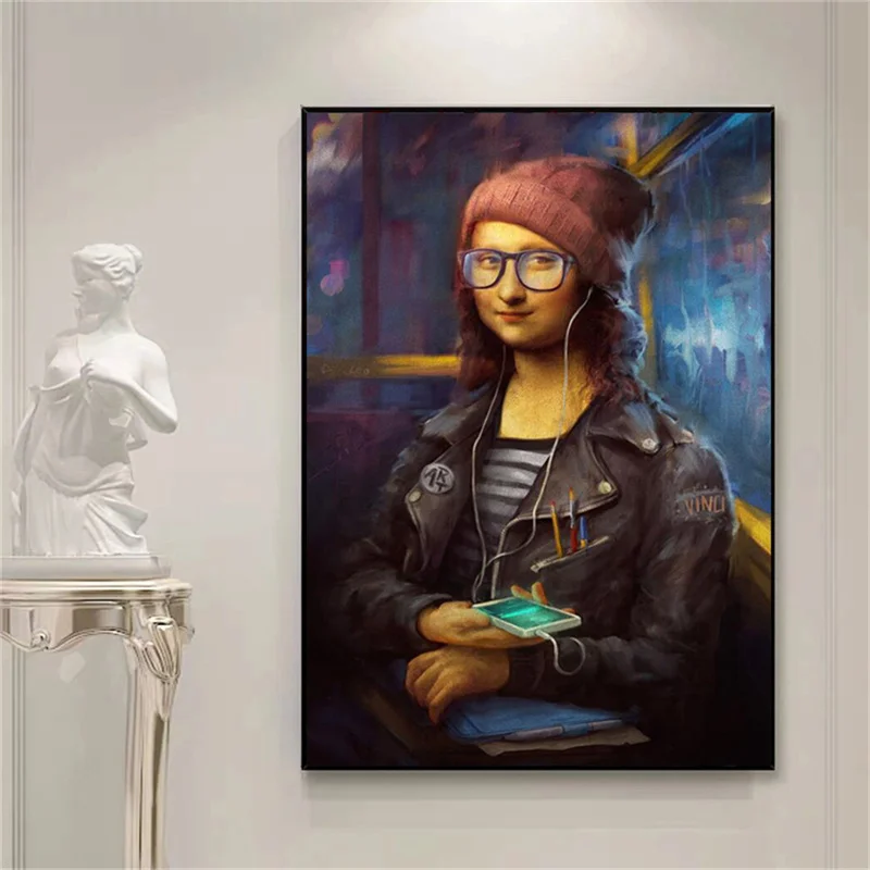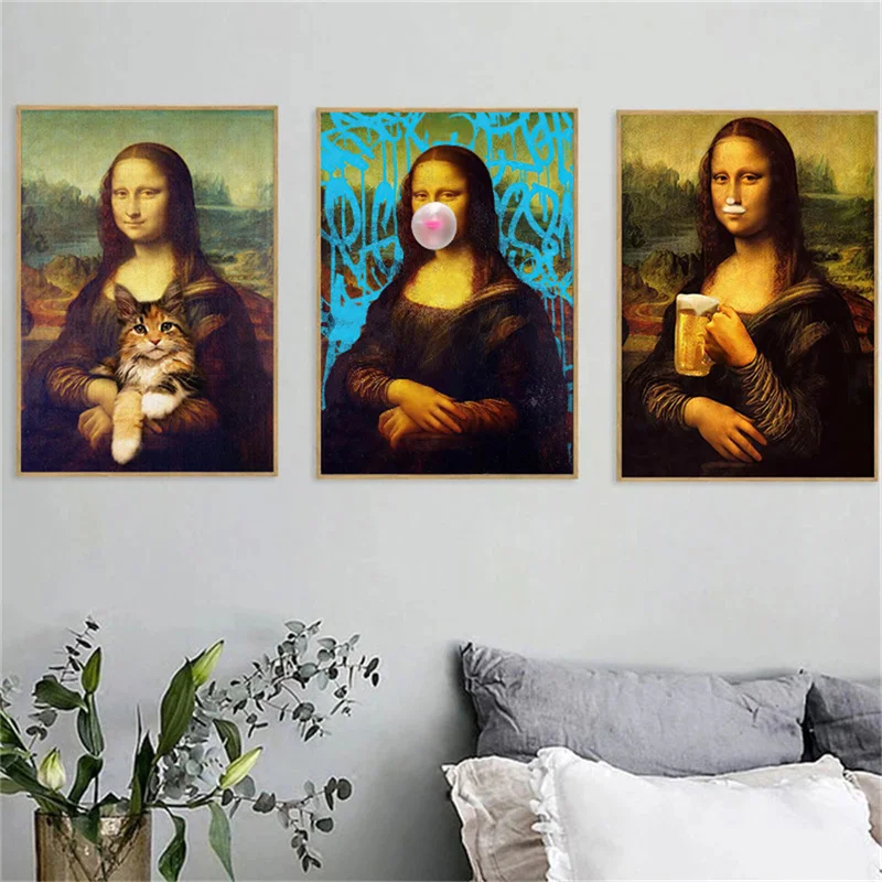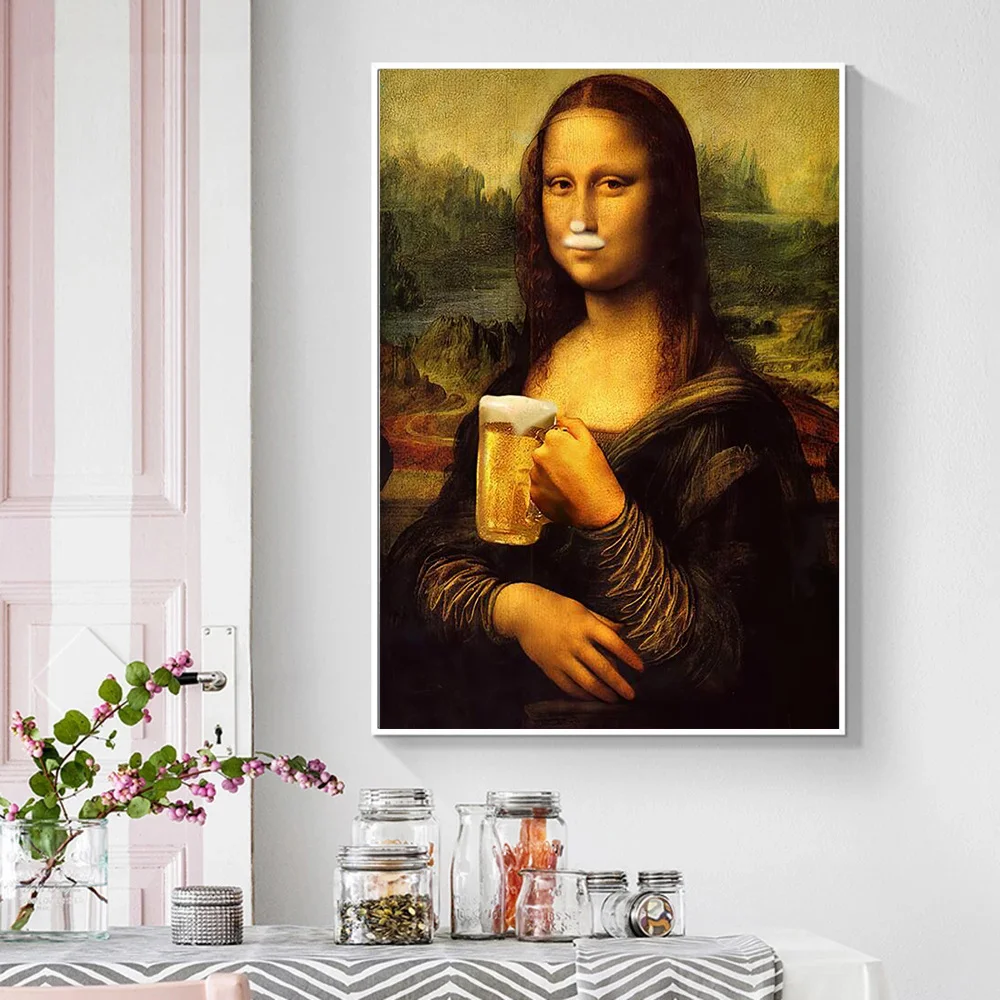 Смешная Мона Лиза с пивом искусство холст искусство фотография для гостиной домашний декор