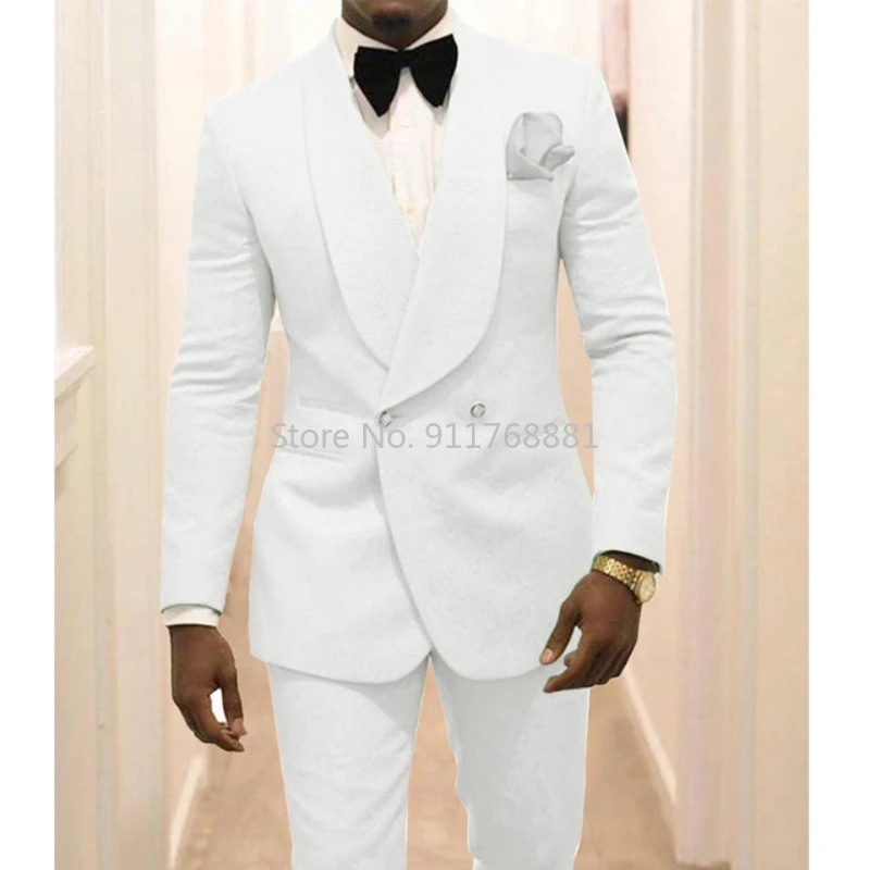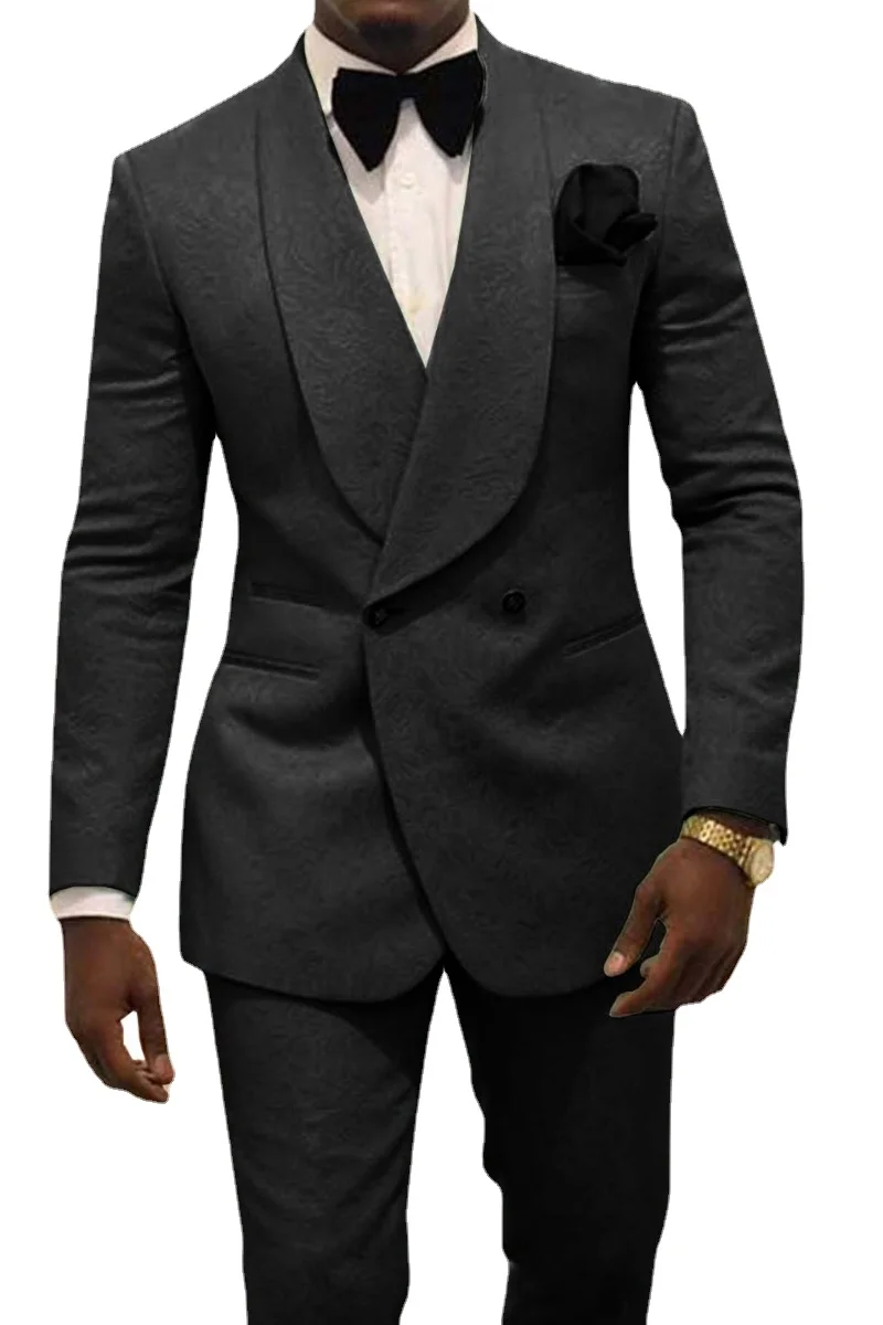 Мужские смокинг для жениха с черным узором под заказ, мужские костюмы с шалью и лацканами, официальное платье для жениха на свадьбу, костюм из двух предметов (пиджак и брюки)