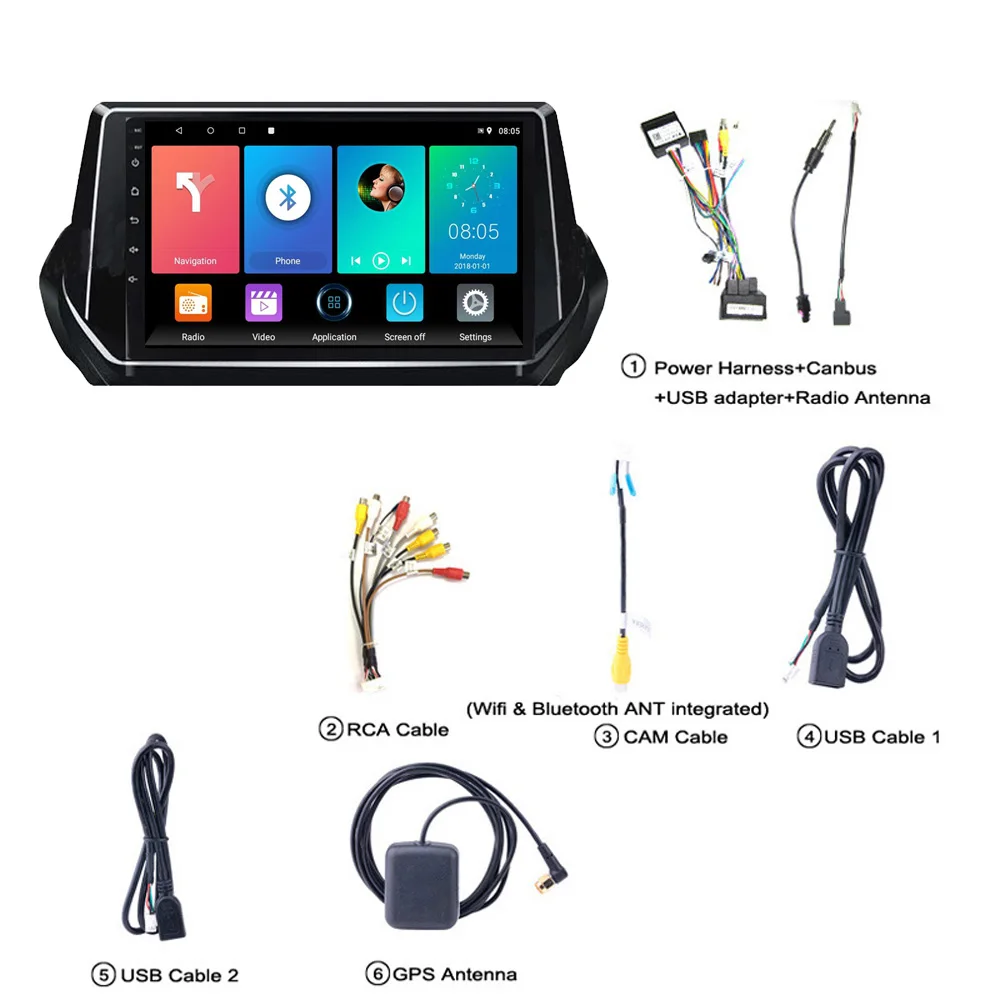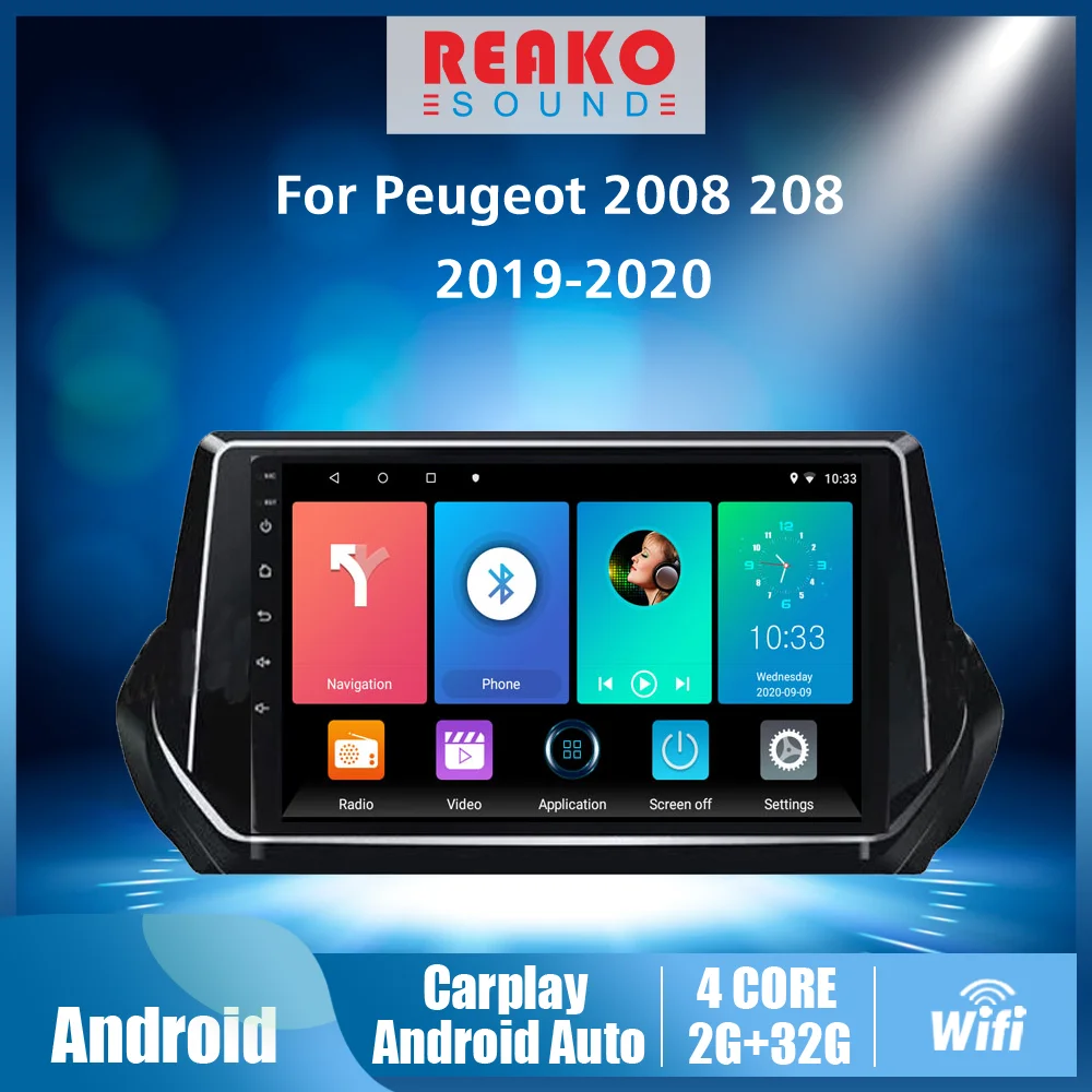 Автомобильный радиоприемник 2 Din Android Carplay для Peugeot 2008 208 2019-2020, автомобильный мультимедийный плеер с GPS-навигацией, Wi-Fi, FM-радио, головное устройство