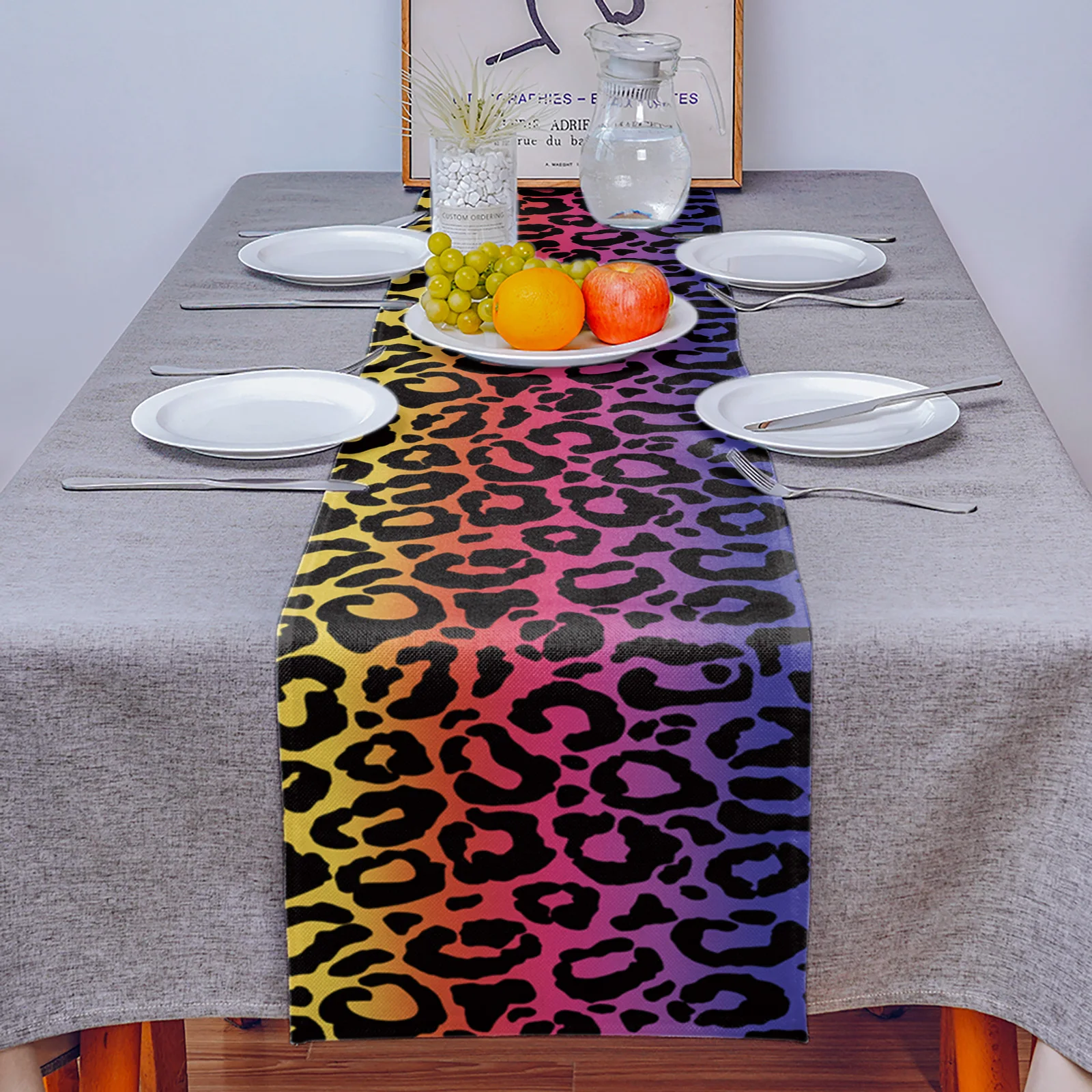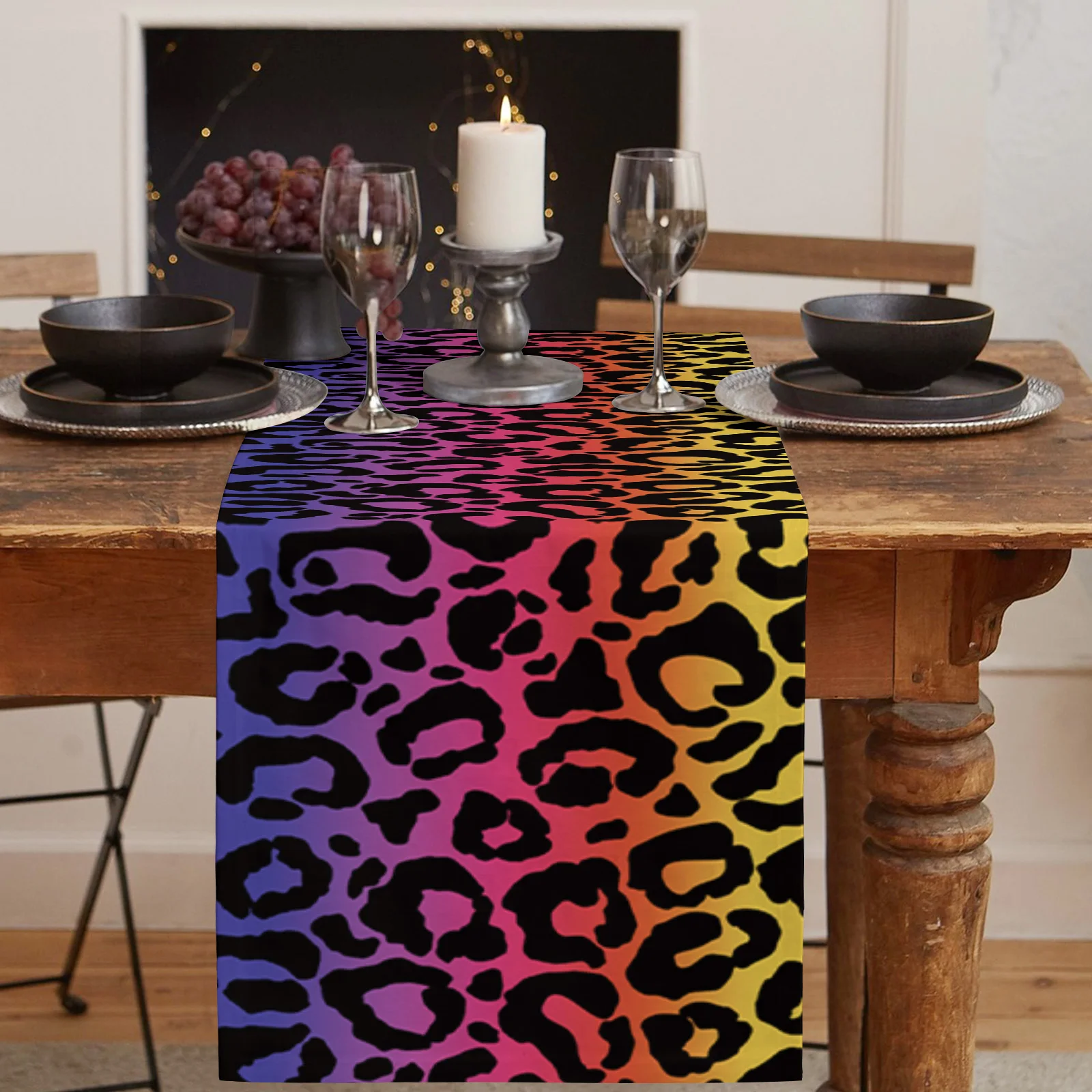 Скатерть с леопардовым принтом радужных цветов для домашнего журнального столика, роскошная скатерть для вечерние чного ужина, свадебного декора