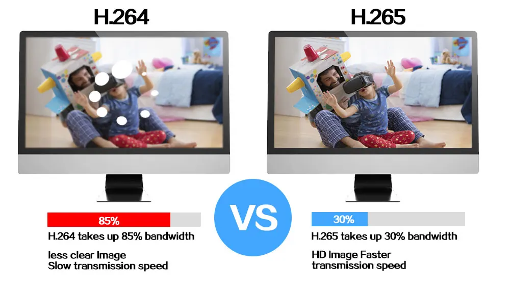 H.265 более четкий, HD разрешение предлагает вам лучшее качество изображения в более низкой скорости. Экономьте больше места для хранения, вы можете уменьшить размер файлов 40%-50%, сэкономить место для хранения HDD и снизить стоимость покупки.