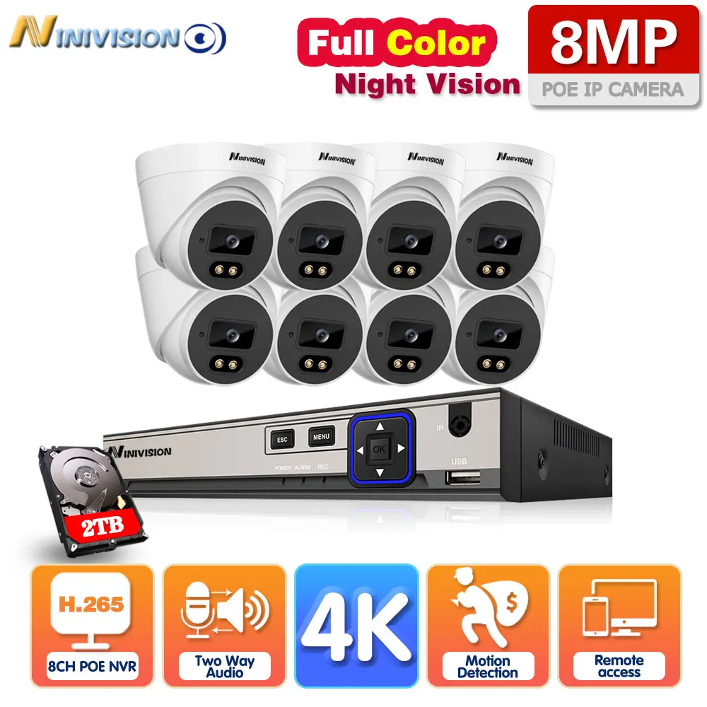 1. Все наши NVR и камеры являются реальными H.265 4K 8MP, NVR может поддерживать 8MP и 4K max, вы можете подключить 720p,1080p,3mp,4mp ,5mp, камеры 8mp & 4k с нашим POE NVR;2. Наш NVR поддерживает распознавание лиц, умное воспроизведение лица, обеспечивает ультра высокое разрешение видео наблюдения, обеспечивая максимальную детализацию и четкость в наличии;3. Наш NVR и камеры поддерживают расширенное H.265 Сжатие видео, питание через Ethernet, подключи и работай, простота установки;4. Все камеры встроены в микрофон и динамик, поддержка двухсторонней аудиозаписи;5. Камеры имеют ABC пластик, подходит для внутренней и наружной, надежной домашней безопасности;6. Все камеры поддерживают Ultra HD Full Color Day Night Vision;7. Поддержка обнаружения движения, оповещения по электронной почте, воспроизведения видео и многоязычности;8. Поддержка Android,Iphone,Ipad,PC,VMS,P2P view;9. Удаленный доступ в любом месте, в любое время;