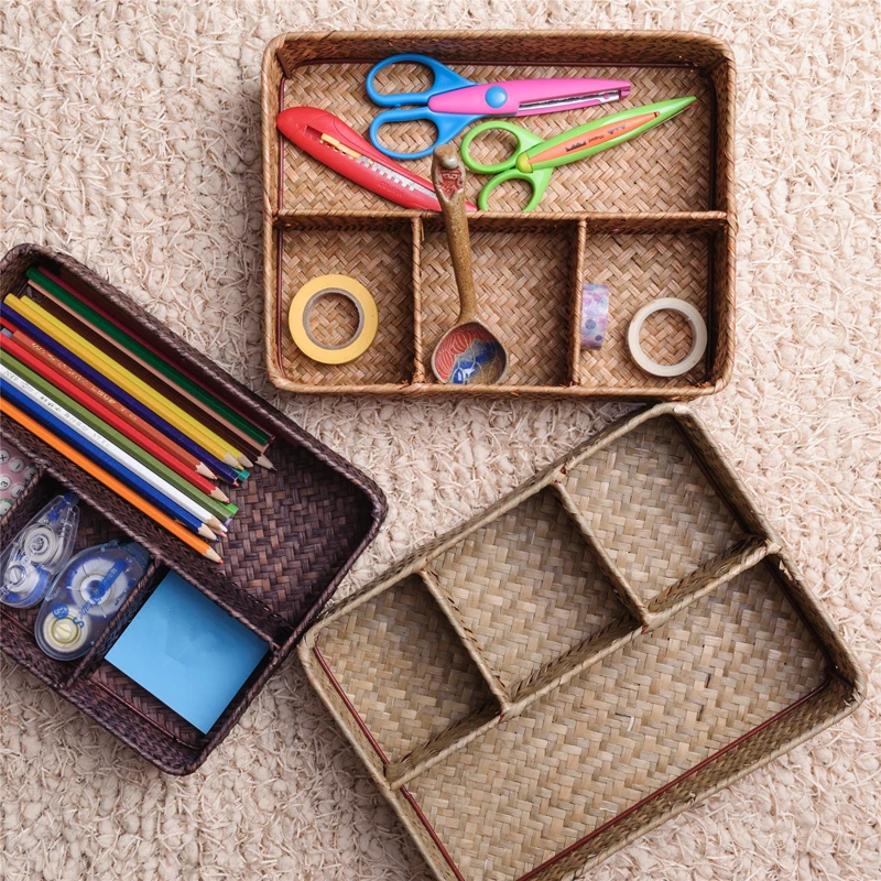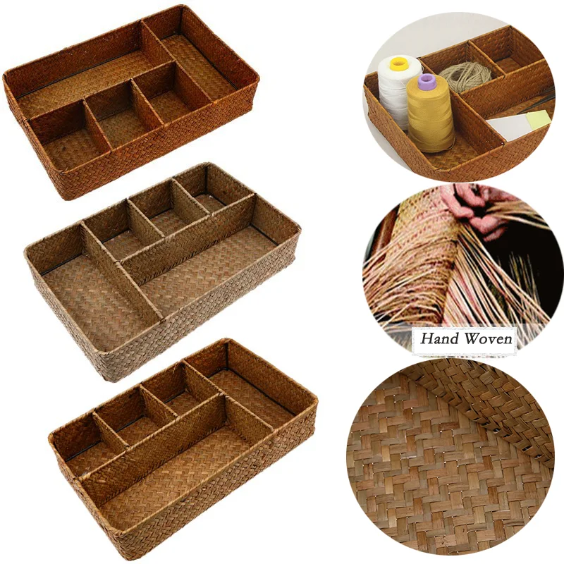 Плетеный вручную контейнер для хранения косметики, прямоугольный контейнер для косметики, органайзер для украшений, Домашний Настольный Декор
