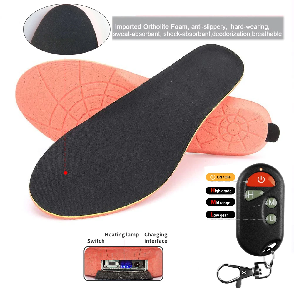 Стельки с электрическим подогревом, USB обувь, спортивные ортопедические стельки с подогревом, дышащие, с дистанционным управлением, с бархатным подогревом