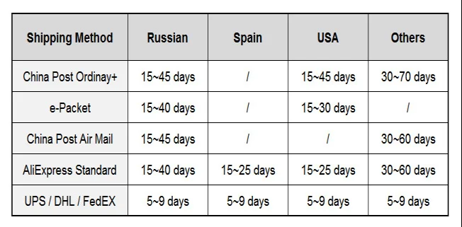 Для 80% стран, когда ваш заказ превышает 120 долларов США, мы отправляем его черезЭкспресс-доставкаТакие как DHLМы предлагаем наиболее приемлемые цены и услуги доставки