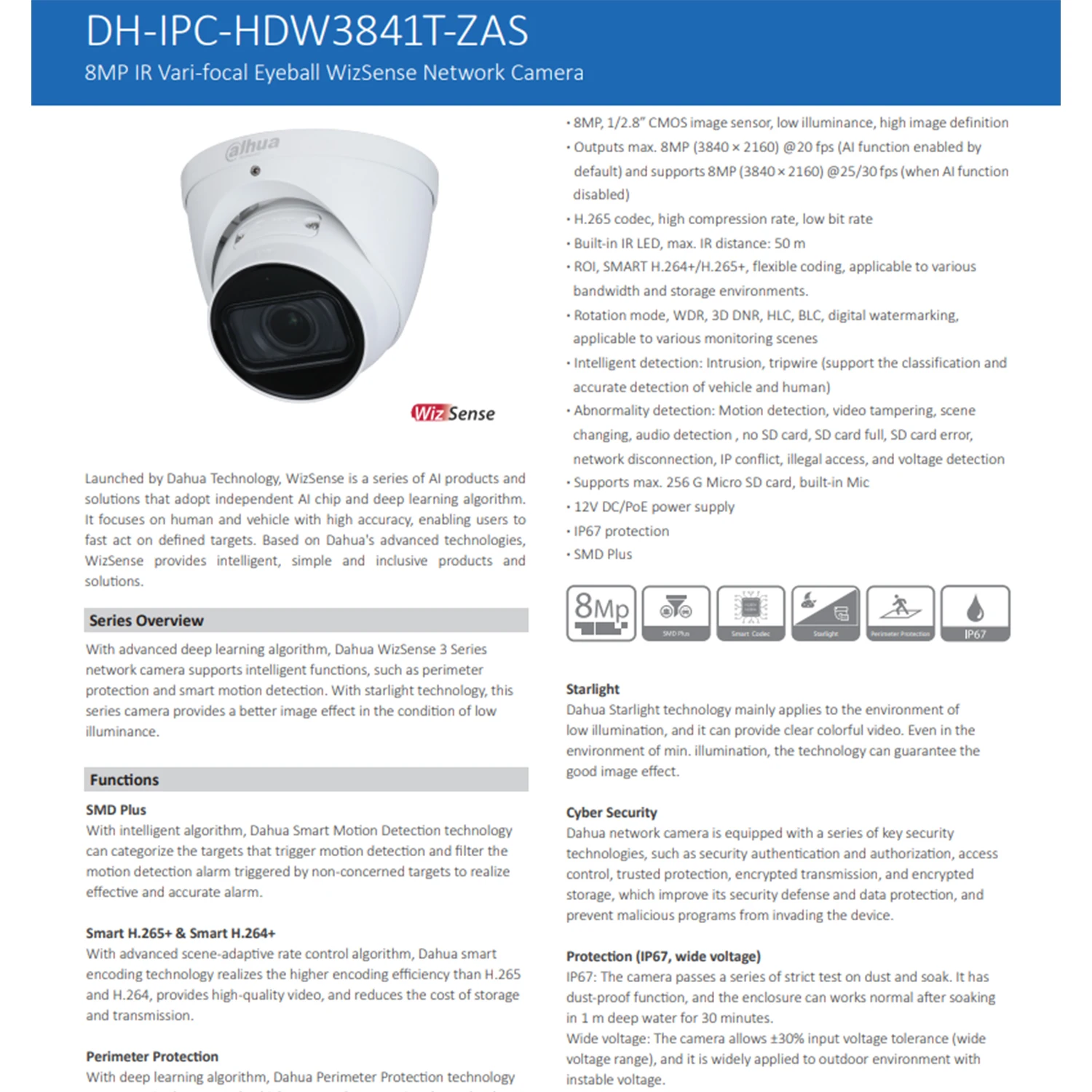 IP-камера Dahua 8 МП 4K HD, фотосессия H.265 + IR30M, поддержка SD-...