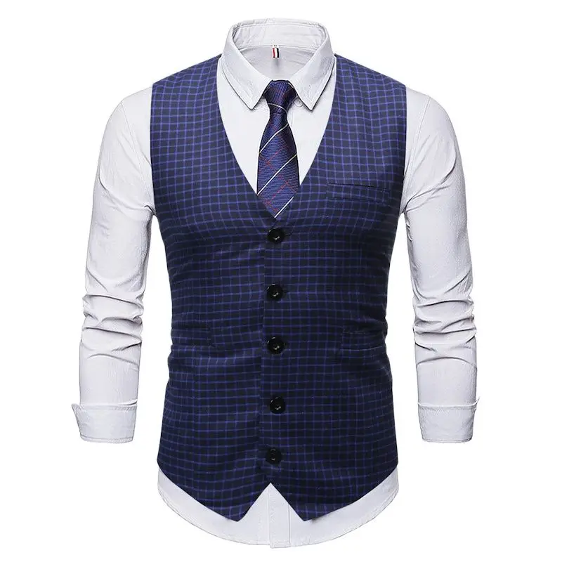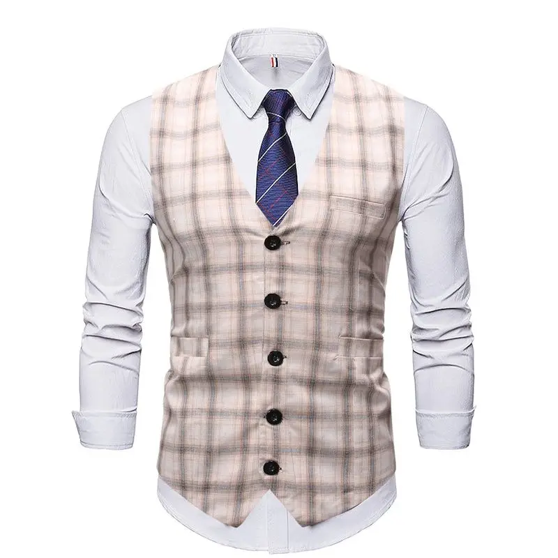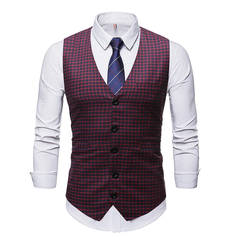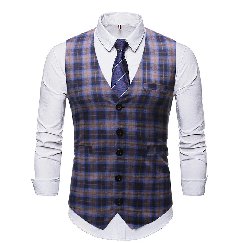 Жилет, мужской формальный жилет, мужской повседневный костюмный жилет, изделия из хлопка, в клетку, на пуговицах, украшение для карманов, 8 цветов, M-3XL