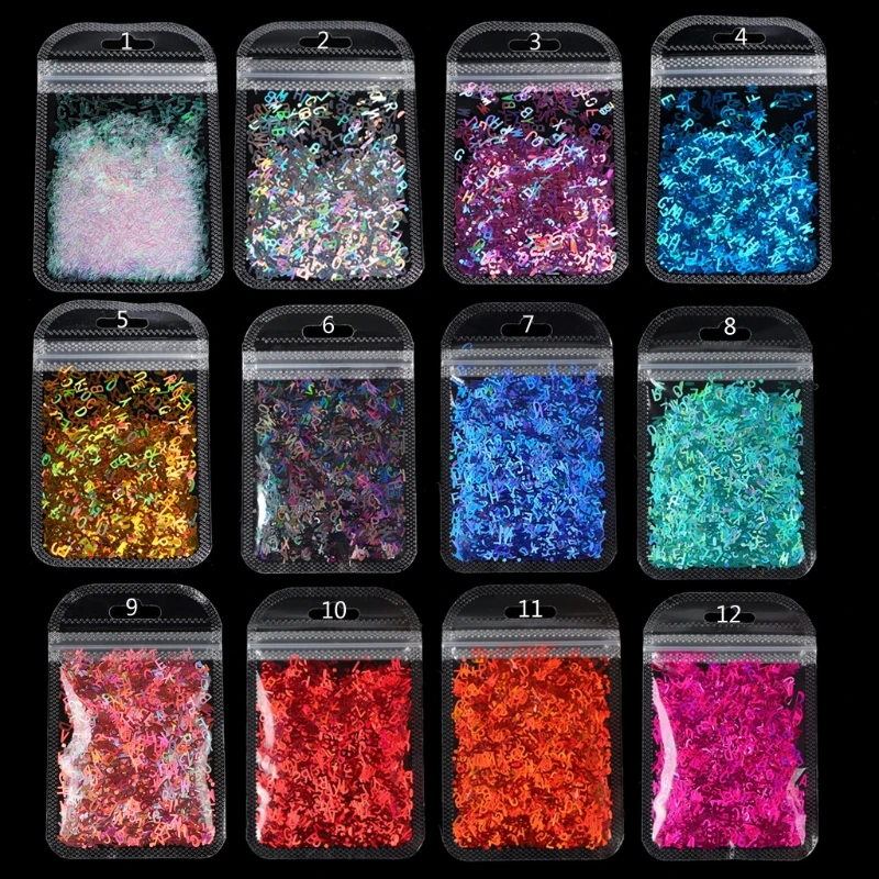 12 цветов Алфавит голографические лазерные буквы крупные блестки эп...
