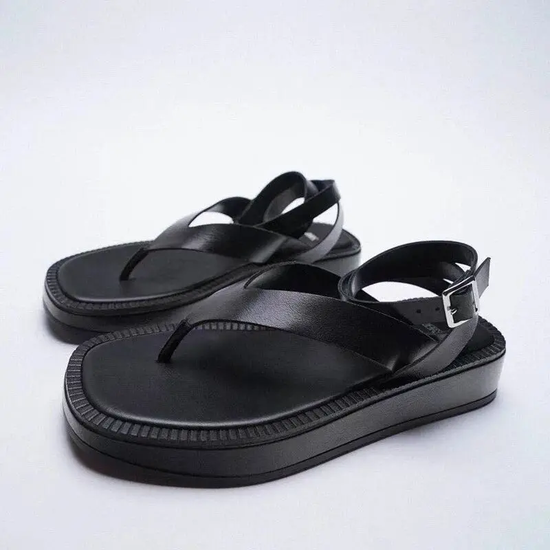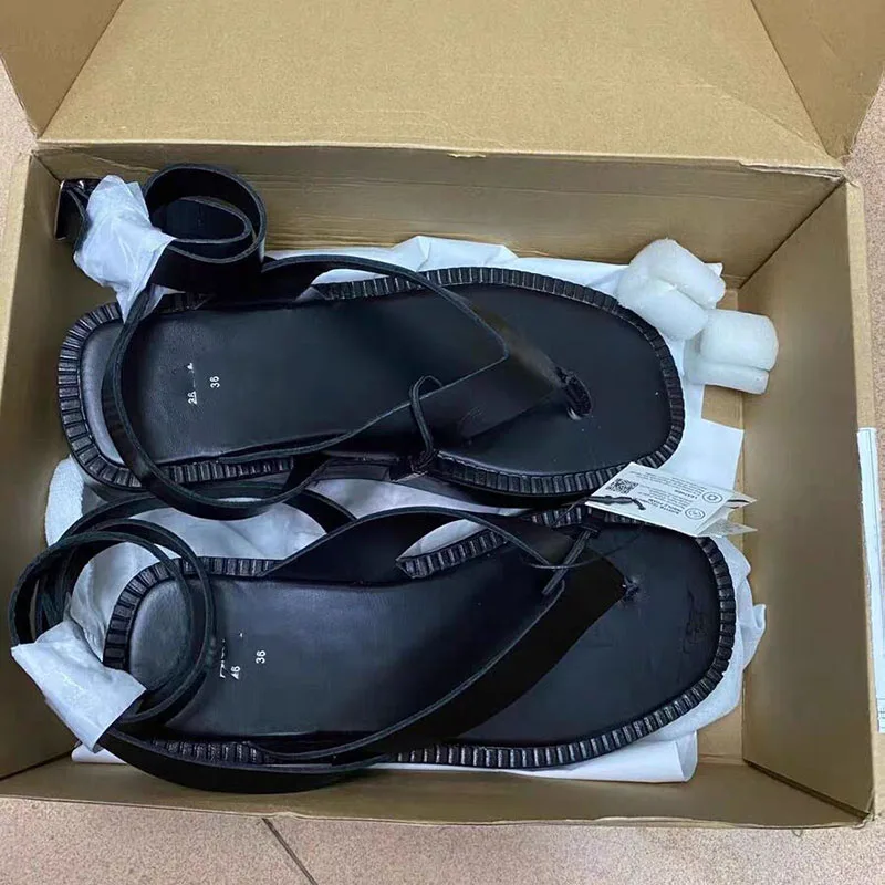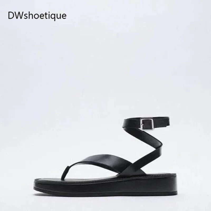 Сандалии женские на плоской подошве, повседневные пляжные шлепанцы, со шнуровкой, на платформе, лето
