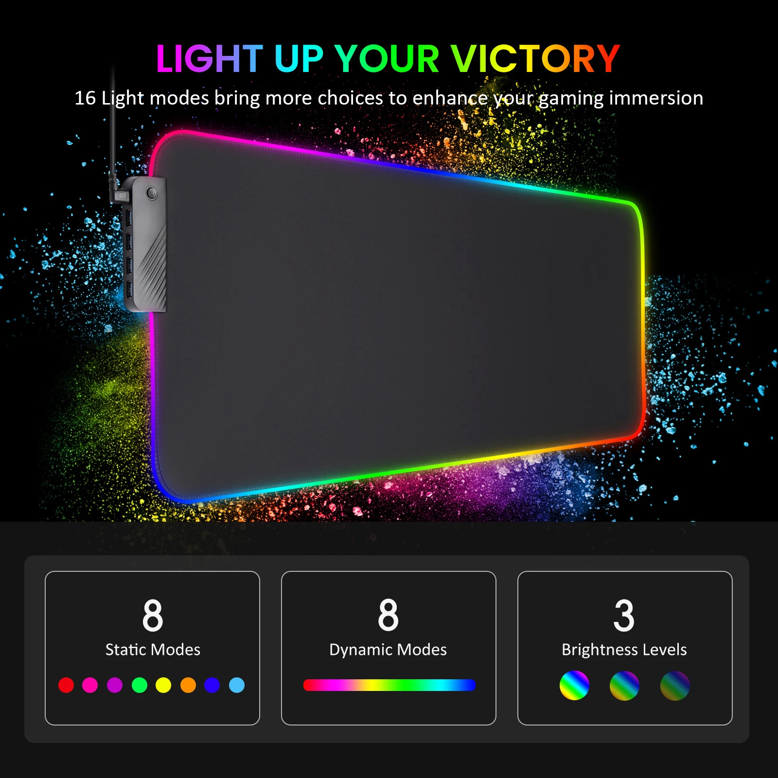 Большой игровой коврик для мыши Mairuige RGB с 4 портами, большой к...