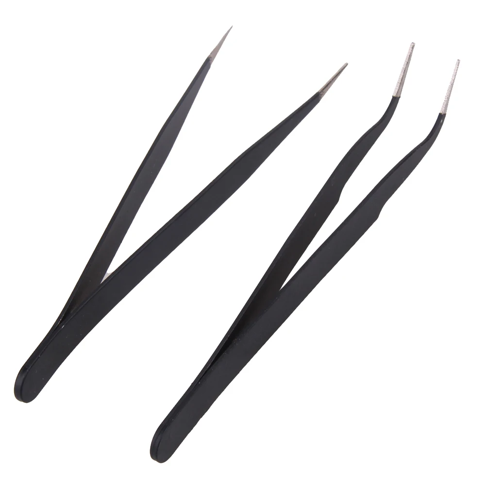 Пинцет из нержавеющей стали для ногтей, антистатические зажимы для маникюра, 2 шт.