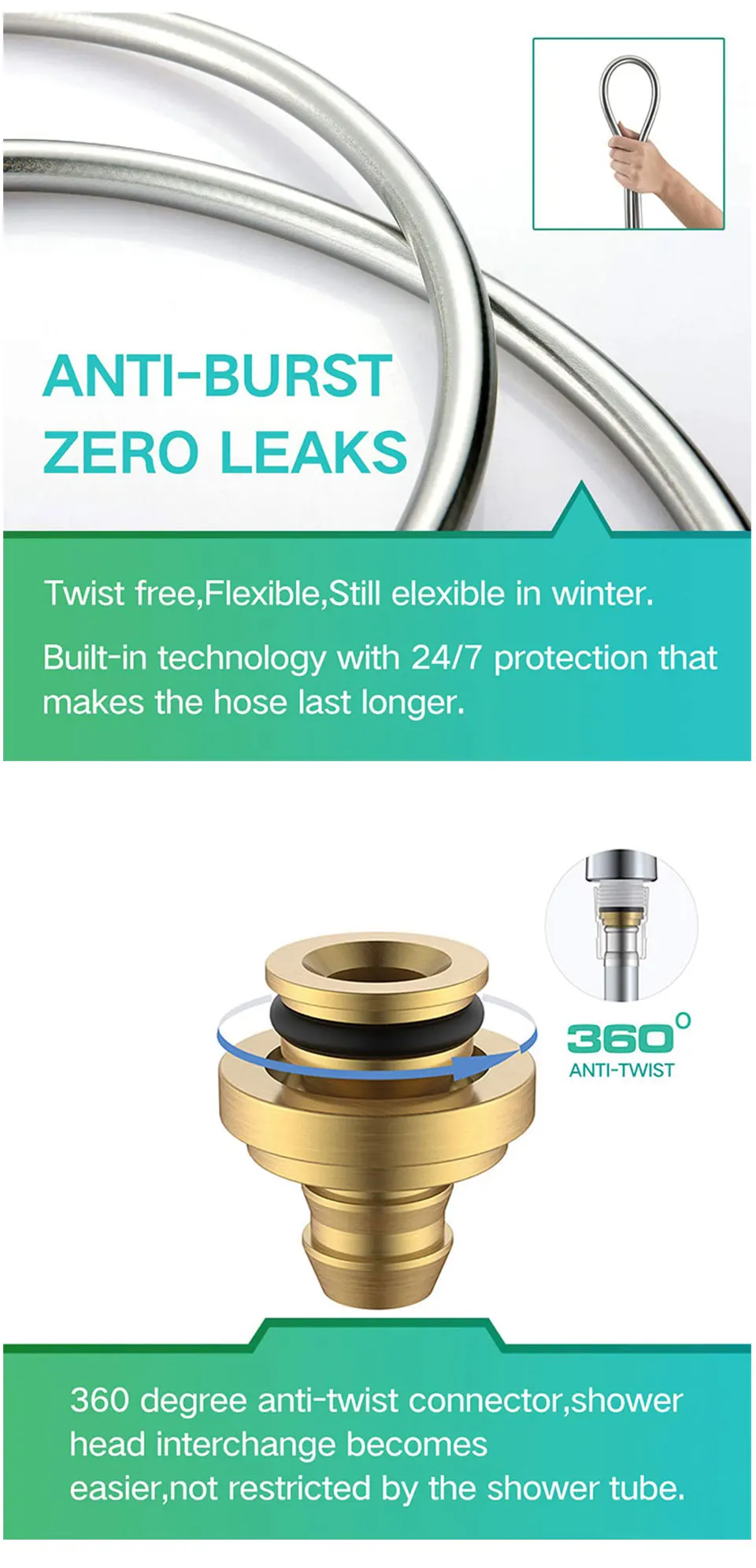 Шланг для душа COOANHO, гладкий, пластиковый, с защитой от перегиба, шланг для биде дюйма, с латунными соединениями (серебристый)