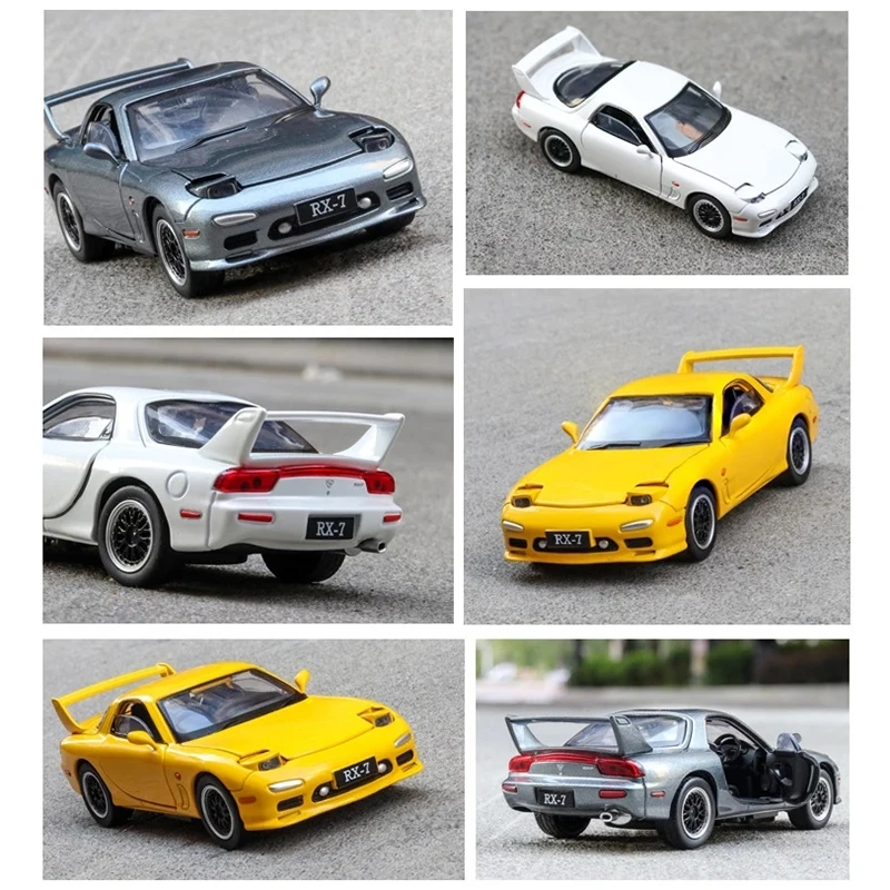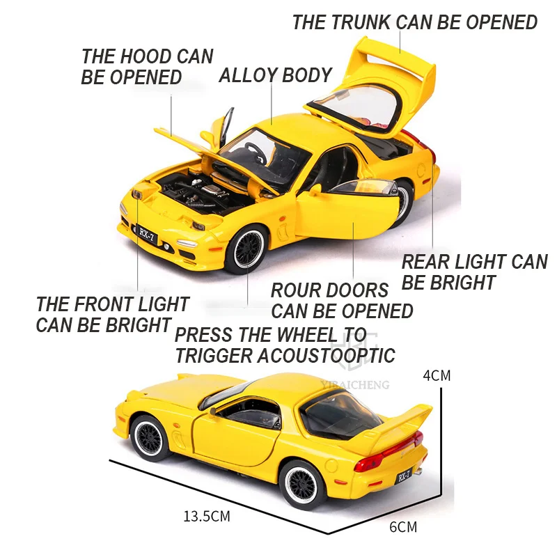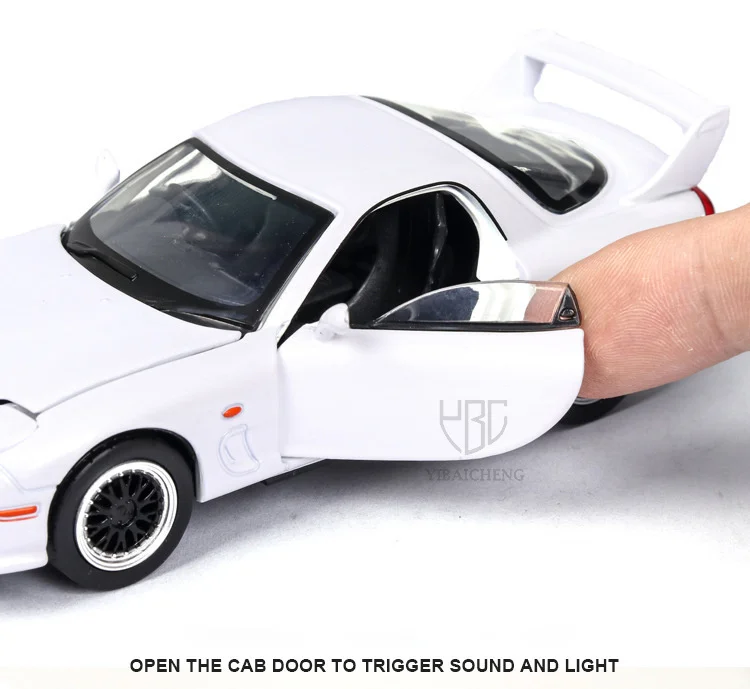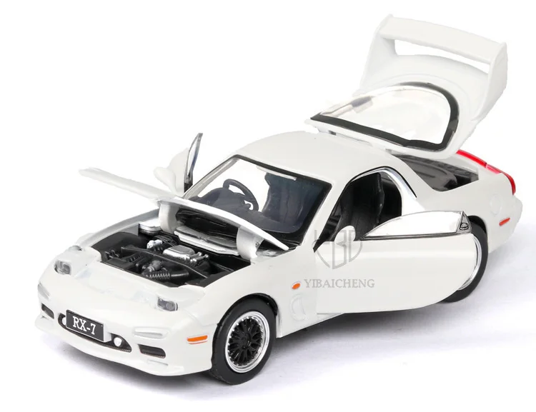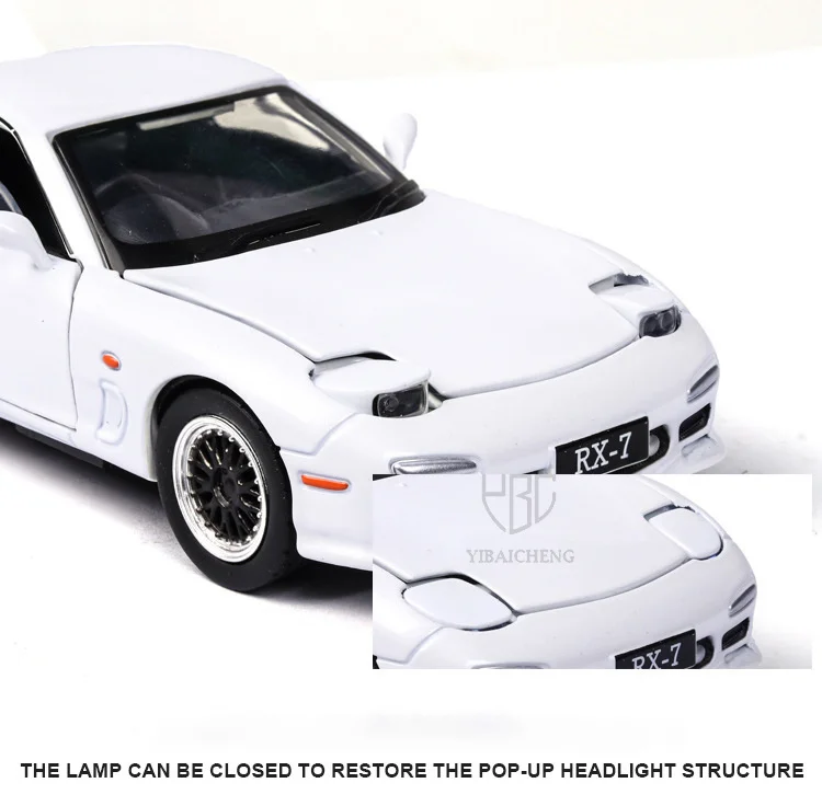 Модель автомобиля Mazda RX7 из металлического сплава, литой спортивный автомобиль с 4 дверцами, открывающаяся металлическая светильник с подсветкой, коллекция детских игрушек, 132