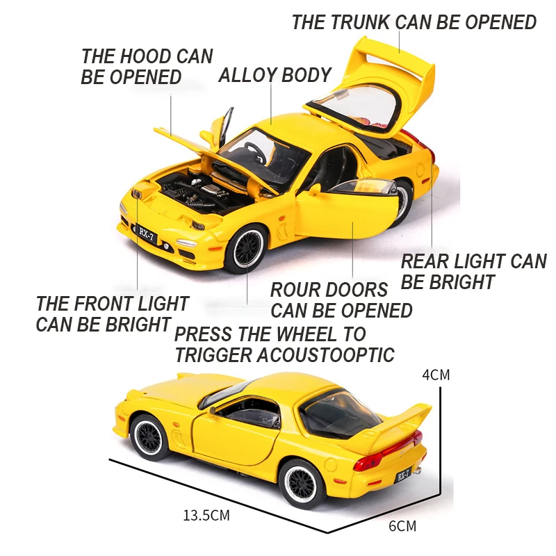Модель автомобиля Mazda RX7, литая под давлением, со звуком и свети...