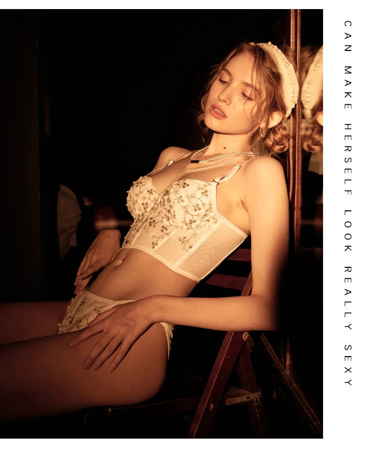 Комплект женского нижнего белья с вышивкой, Привлекательный бюстгальтер пуш-ап и трусики, кружевной бюстгальтер, Регулируемые бюстгальтеры, Топ