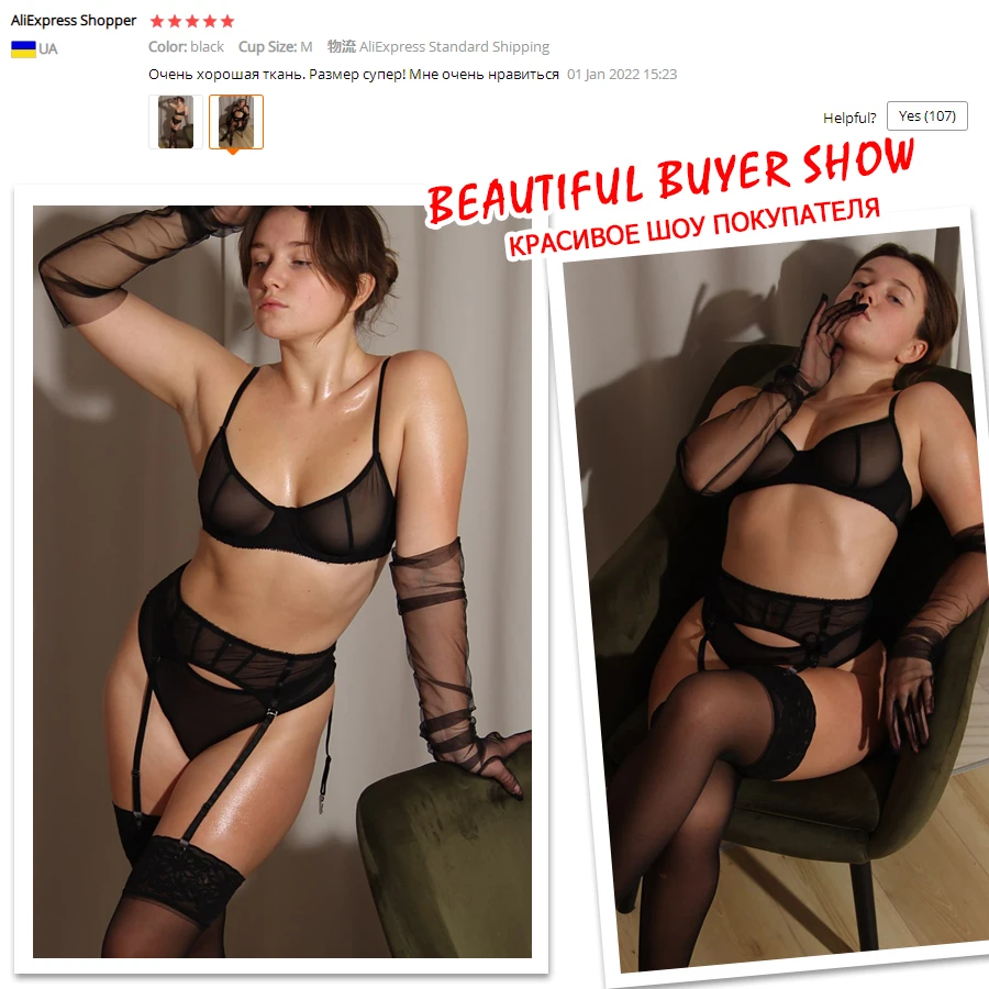 Пикантный сетчатый прозрачный бюстгальтер VOTERBO, Комплект трусов ...