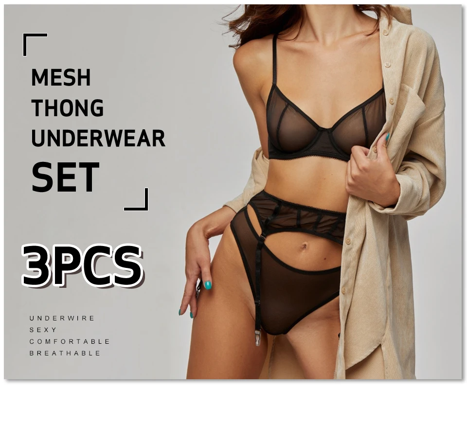 3 шт., чувственное нижнее белье, подвязка, комплект, Прозрачное ниж...
