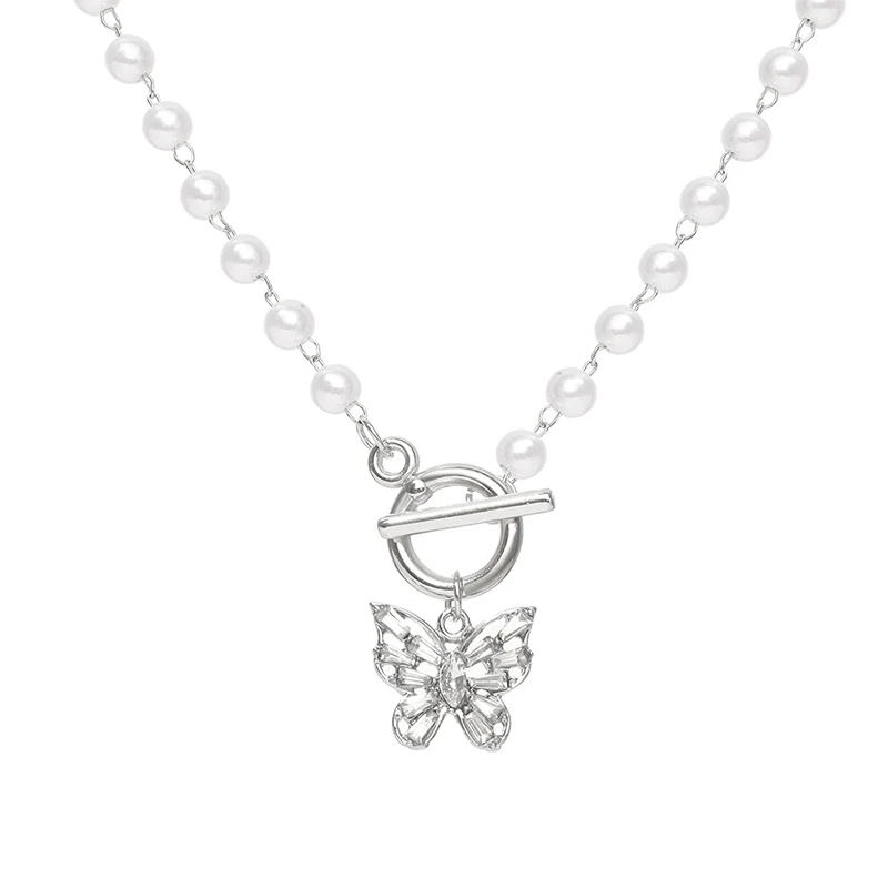 Винтажная жемчужная цепочка на шею, подвеска в виде бабочки, ожерелья для женщин, в стиле панк, серебряный цвет, кристалл, колье, ожерелья, вечерние ювелирные изделия, подарок