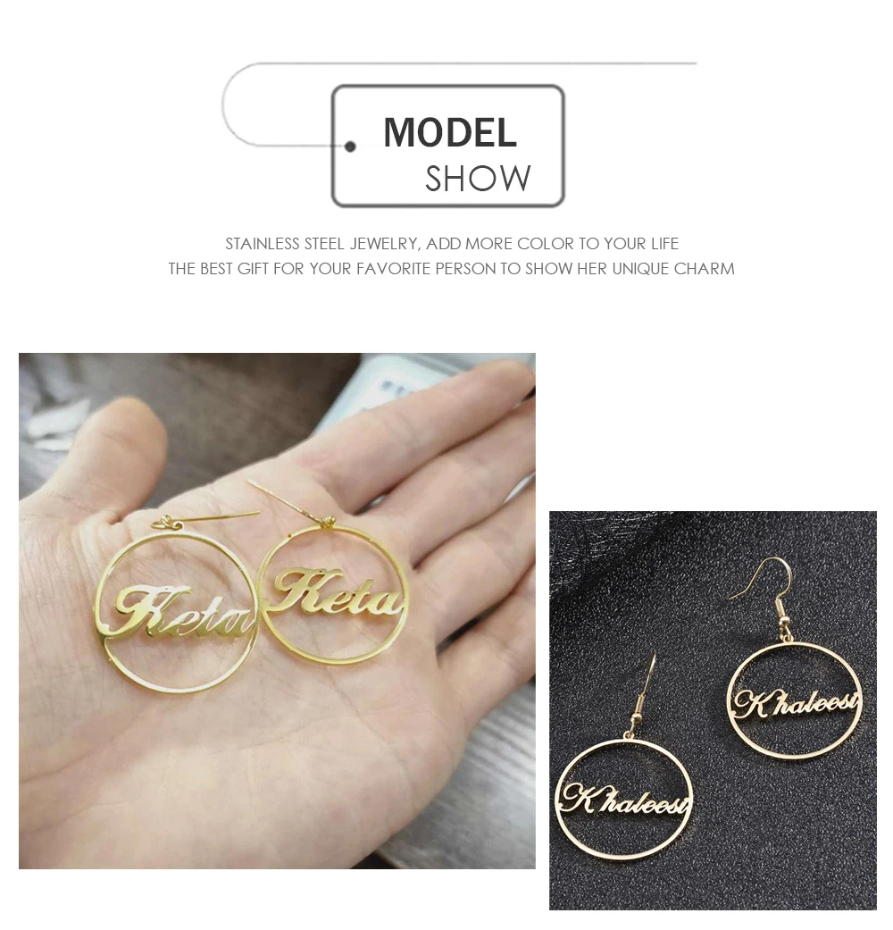 Изящная пара персонализированный крючок именные серьги из нержавеющей стали с подвеской большой круг индивидуальные серьги подарок подруге ювелирные изделия