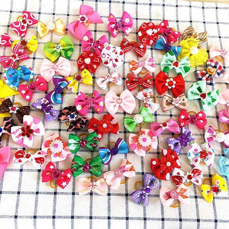 50 шт.лот аксессуары для груминга домашних животных милые банты для собак и кошек со стразами резинки для волос аксессуары для волос для щенков и маленьких собак