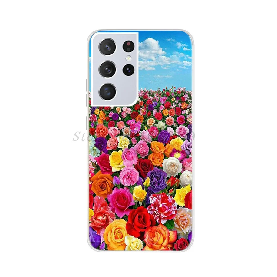 Чехол с цветами для Samsung Galaxy S21 Plus, Ультратонкий чехол с цветами, мягкий защитный чехол из ТПУ для GalaxyS21 FE S 21 Ultra Plus, чехлы