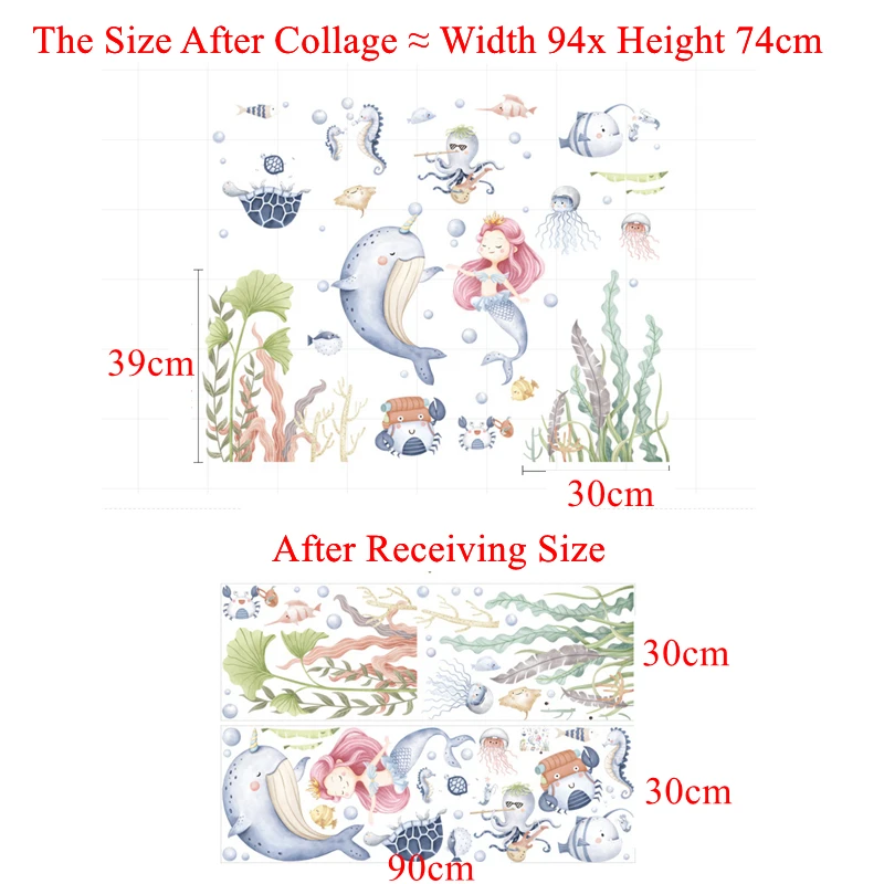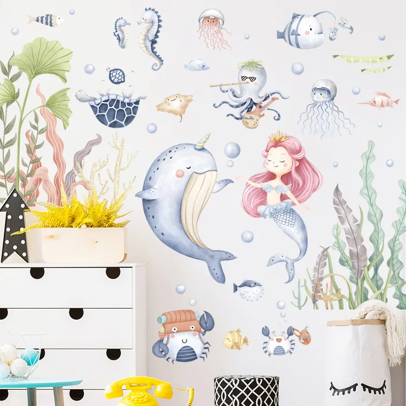 Настенные ПВХ наклейки Zerolife с изображением русалки, морской жизни, для украшения дома, обои для детской комнаты, водонепроницаемые настенные наклейки, художественная роспись