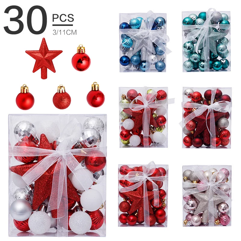 30 шт.компл. Рождественские шары с верхней елкой, блестящие звезды,...