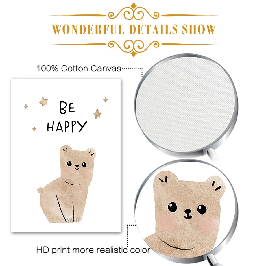 Милые Животные медведь лиса желтые цифры детская настенная Картина ...