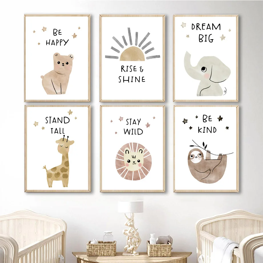 Симпатичная панда олень Лев Слон Леопард детская настенная Картина ...