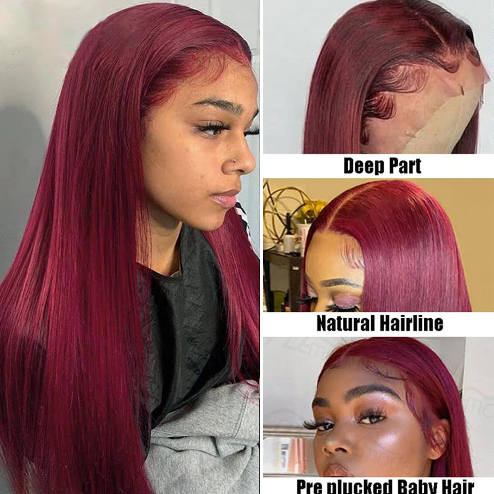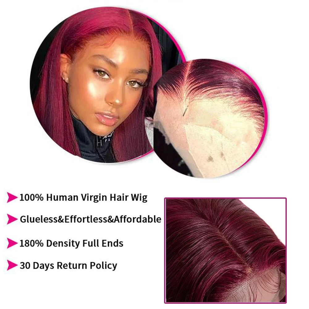 99J прямые человеческие волосы на сетке спереди, парики 13x4, цвет бордовый, 30 дюймов, искусственная кружевная передняя часть, женский парик плотностью 180