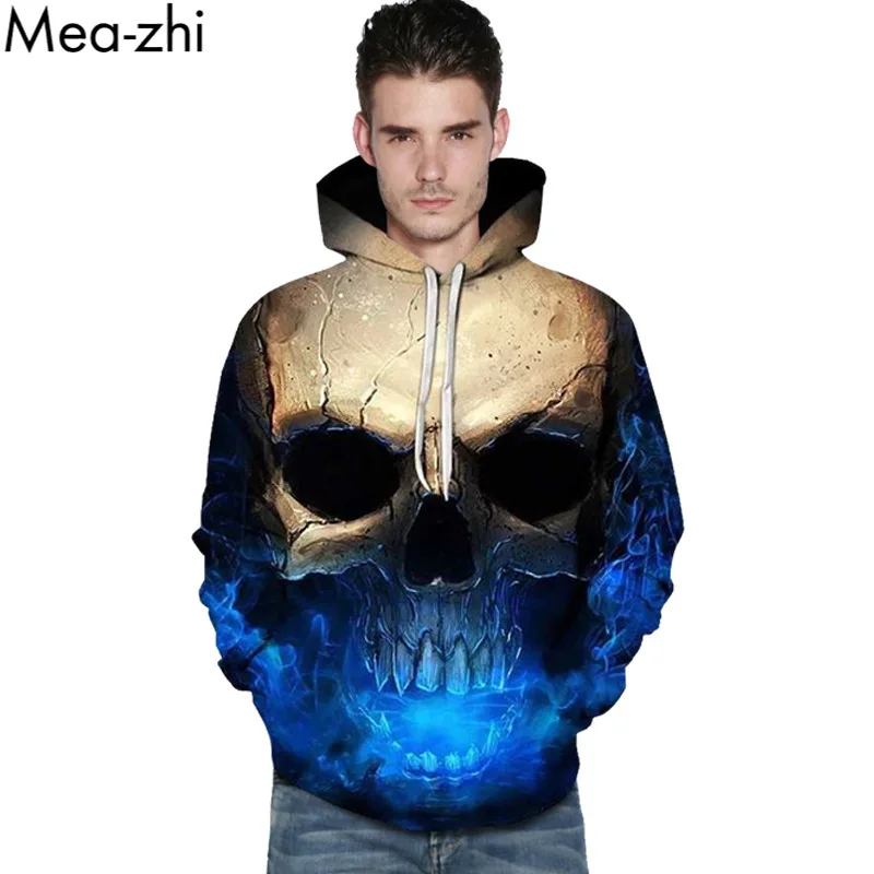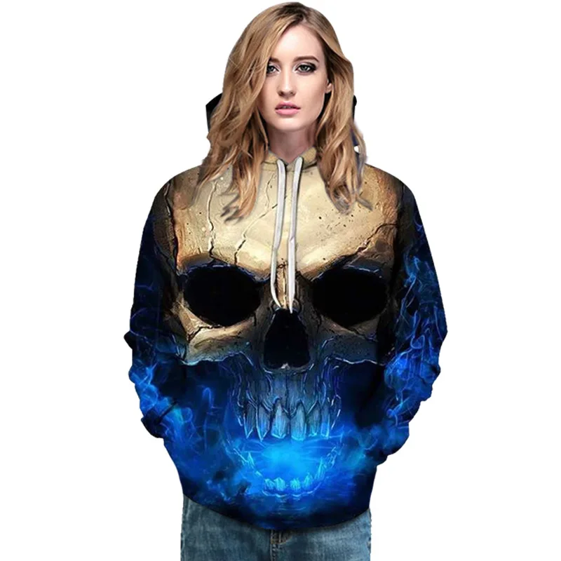 Толстовка Мужскаяженская с 3D-принтом черепа, Свободный свитшот, повседневный спортивный пуловер с длинным рукавом, худи, уличная одежда
