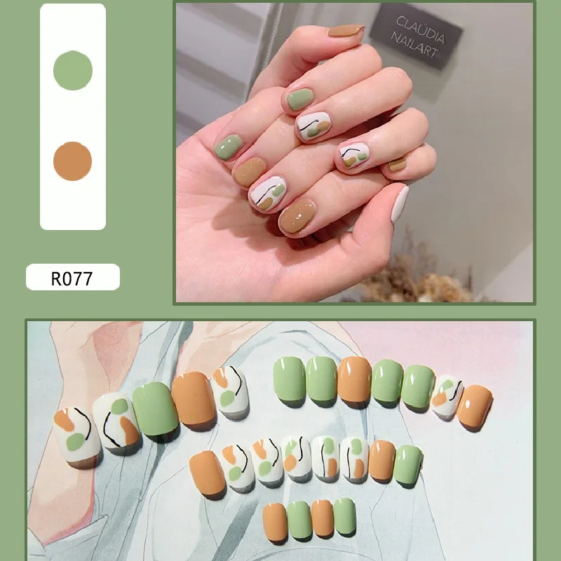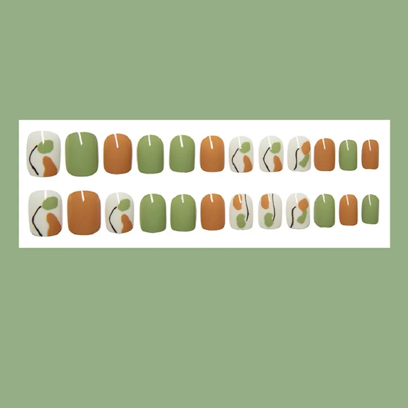GAM-BELLE Летний зеленый граффити искусственные короткие накладные ногти полное покрытие съемный пресс на ногти Ложные Типсы для маникюра инструмент