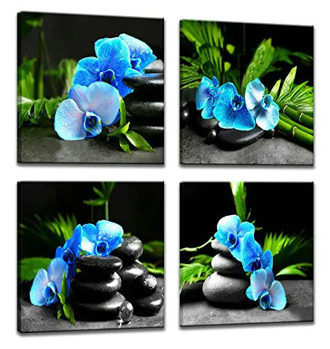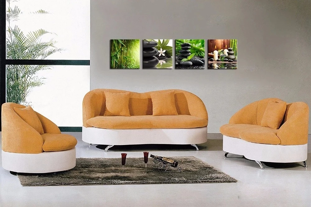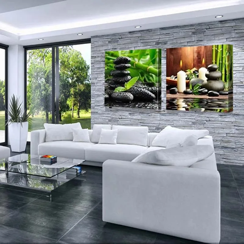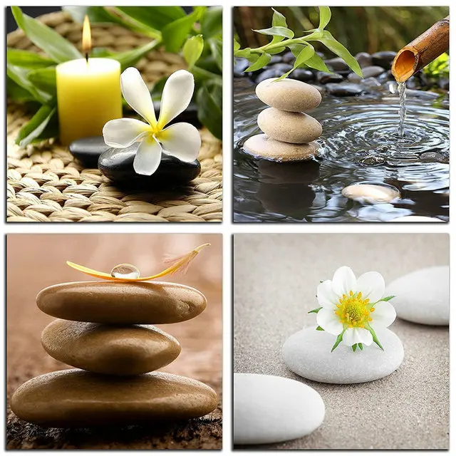 4 панели, бамбуковые зеленые картины с спа, свечи из дзен-камня, цветочный принт на холсте, настенное искусство для домашнего декора, ванной, гостиной