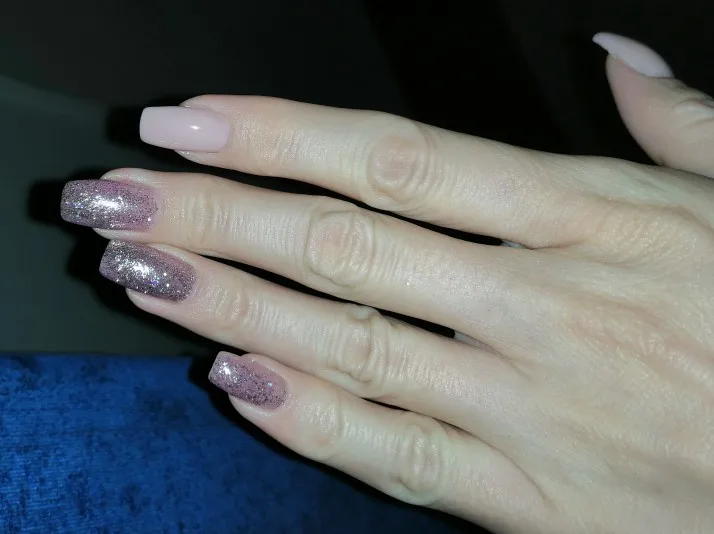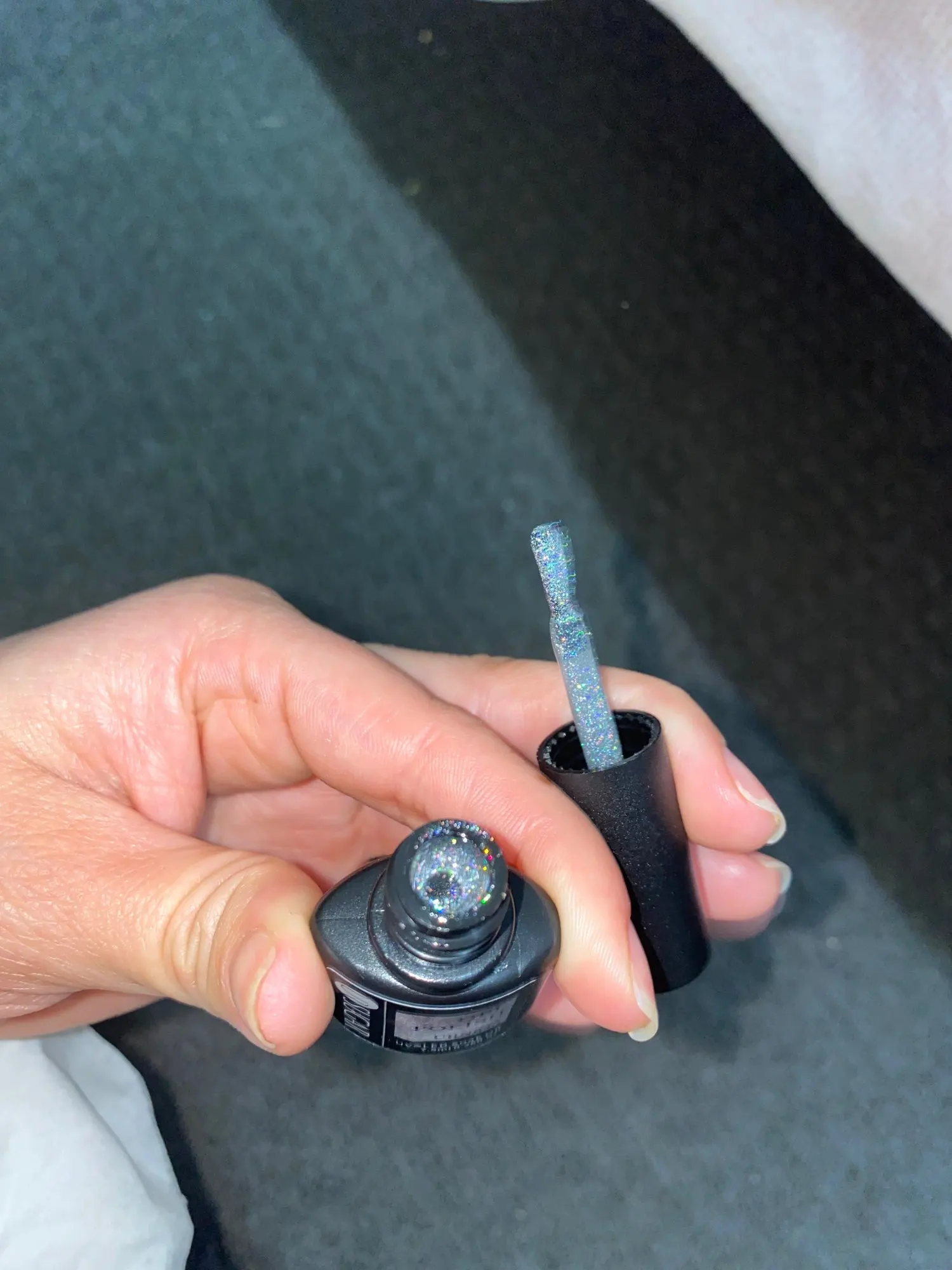 Доставка месяц. Офигенный гель лак, на ногтях даже лучше и эффектнее, чем на фото у продавца и на мои фото. Блестит нереально! Блёстки крупные, голография, но ложатся ровно, не топорщатся. Наносится не скажу что прям идеально, но за счёт того, что этих блесток очень много, лёгкие проплешины не заметны, сверкают со всех сторон! Лака действительно максимум 1/3 от флакончика, но поскольку брала за 30,р. по акции, то для такого количества, качества и эффекта, всё устраивает! Чувствую будет один из моих любимых гель лаков! Фото к сожалению не передаёт истинного блеска этого лака.
