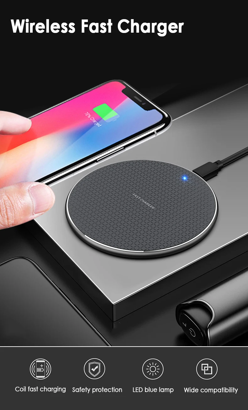 Быстрая Беспроводная зарядка: режим быстрой зарядки 10 Вт совместим только с Samsung Galaxy S9/S9 Plus/S8/S8 Plus/Note 9/Note 8/Note 5/S6 Edge/S7/S7 Edge и другие продукты серии Galaxy Note и Galaxy S, 7,5 Вт Быстрая зарядка совместима с iPhone X/XS MAX/XR, iPhone8/8 plus (Другие устройства с поддержкой Qi будут заряжаться со стандартной скоростью беспроводной зарядки). Многофункциональная Защита: дизайн в будущем делает его ультра тонким, без раздражающих звуков, без запаха пластика, даже светодиодный индикатор является низким и не вызывает никаких помех в ночное время. Противоскользящее резиновое основание предотвращает скольжение устройства во время зарядки. Металлический корпус из алюминиевого сплава: металлический корпус создает прочную, прочную беспроводную подставку для зарядного устройства, и он может эффективно снизить температуру, защищает ваши телефоны от перегрева. Расслабьтесь, зная, что ваш телефон безопасно заряжается у вашей кровати.
