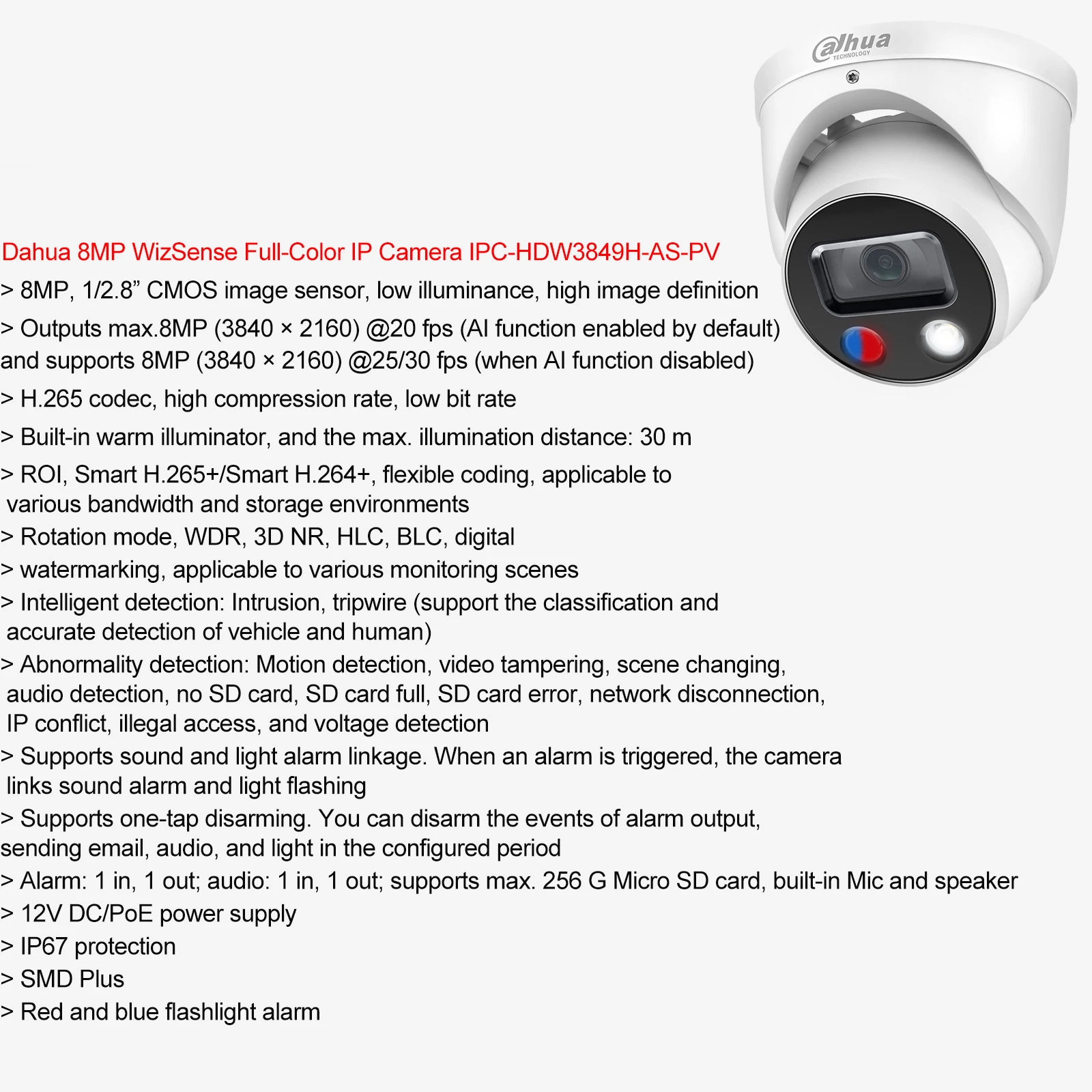 IP-камера Dahua, 8 Мп, 4K, сетевой видеорегистратор, светочувствите...