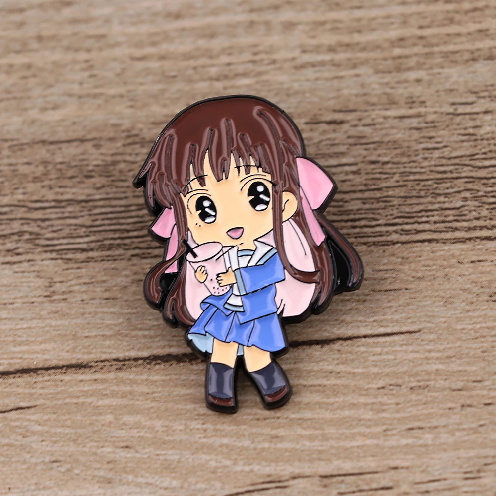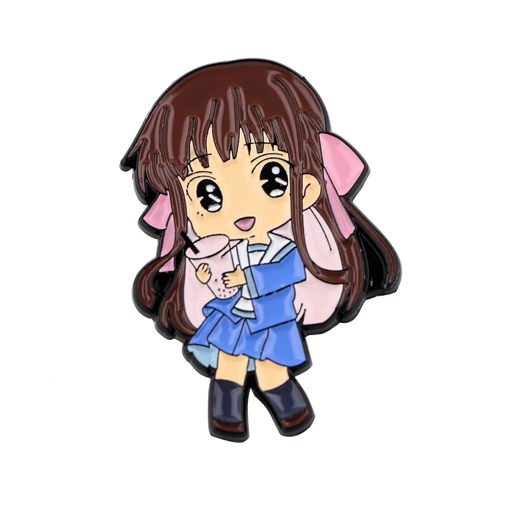 Брошь-значок BG1404 в виде корзины фруктов, аниме, жесткая эмалированная брошь, булавки из металлического сплава, модные украшения значок булавки на лацканы, аксессуары, подарок для друзей
