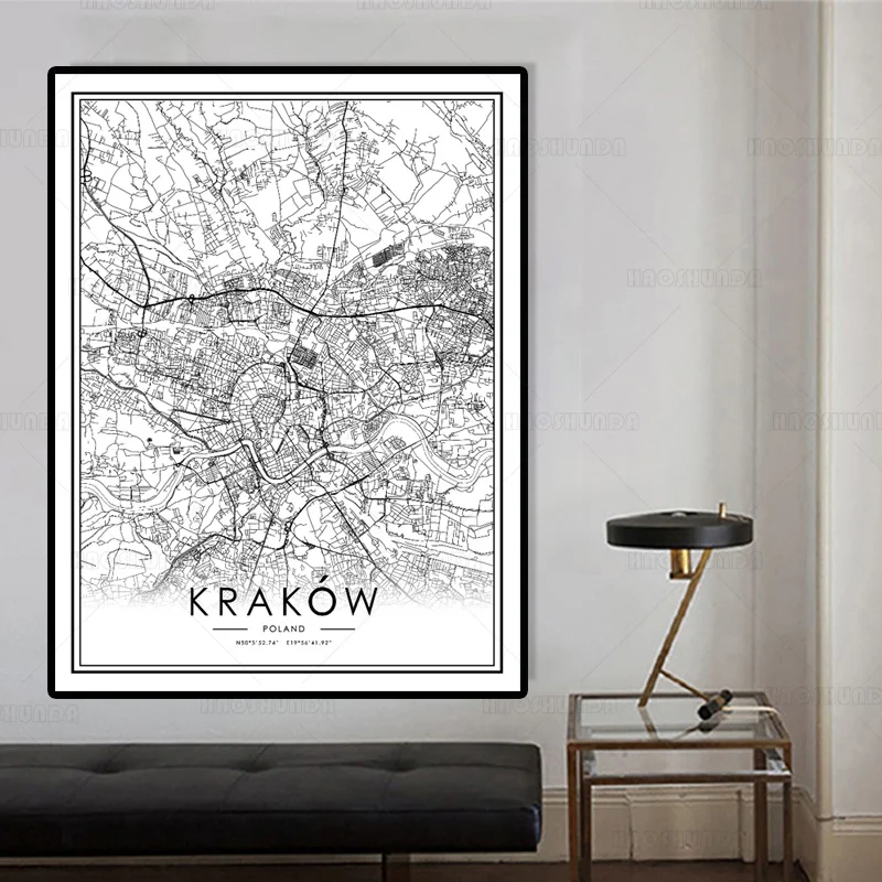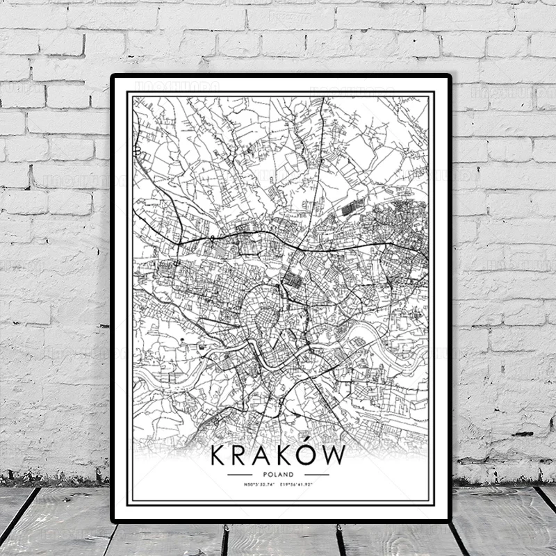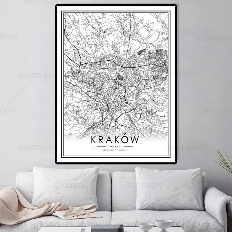 Карта города Краков, настенная Картина на холсте, скандинавские плакаты и принты, настенные картины для гостиной