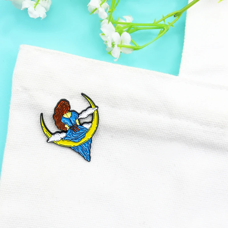 Эмалированная заколка Moon Girls and Moon Cat, индивидуальная закол...
