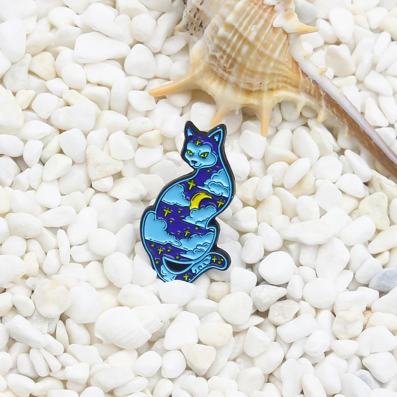 Эмалированная заколка без волос с изображением кота звездного неба,...