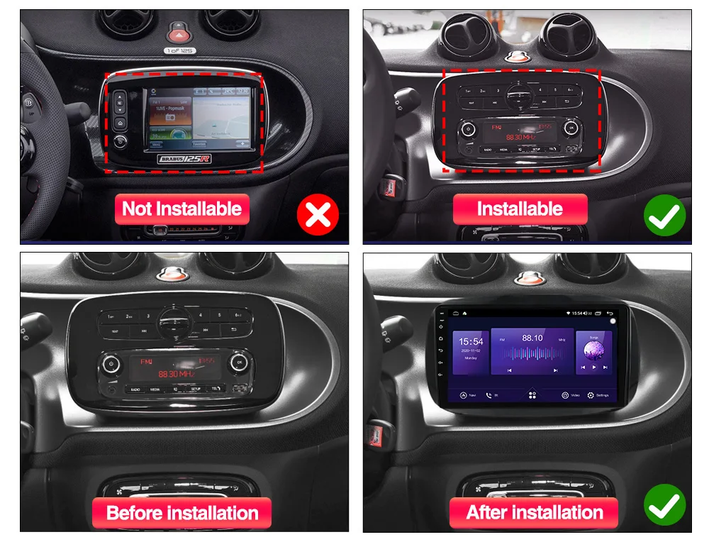Для Smart Fortwo 3 C453 A453 W453 2014 - 2020